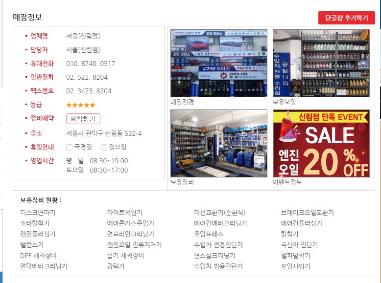 우선 보유장비 현황을 살펴보면서 어느정도의 정비가 가능한지 살펴보는 것도 중요하다. 또한 영업시간과 자세한 주소 또한 찾아봐야하며 간단한 엔진오일 교환이라면 상관없지만 부품 교체 및 특수 정비 같은 경우는 전화로 사전에 문의를 해보고 방문하는 것이 좋다.