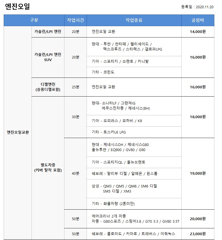 :::: 공임나라 엔진오일 공임비는???