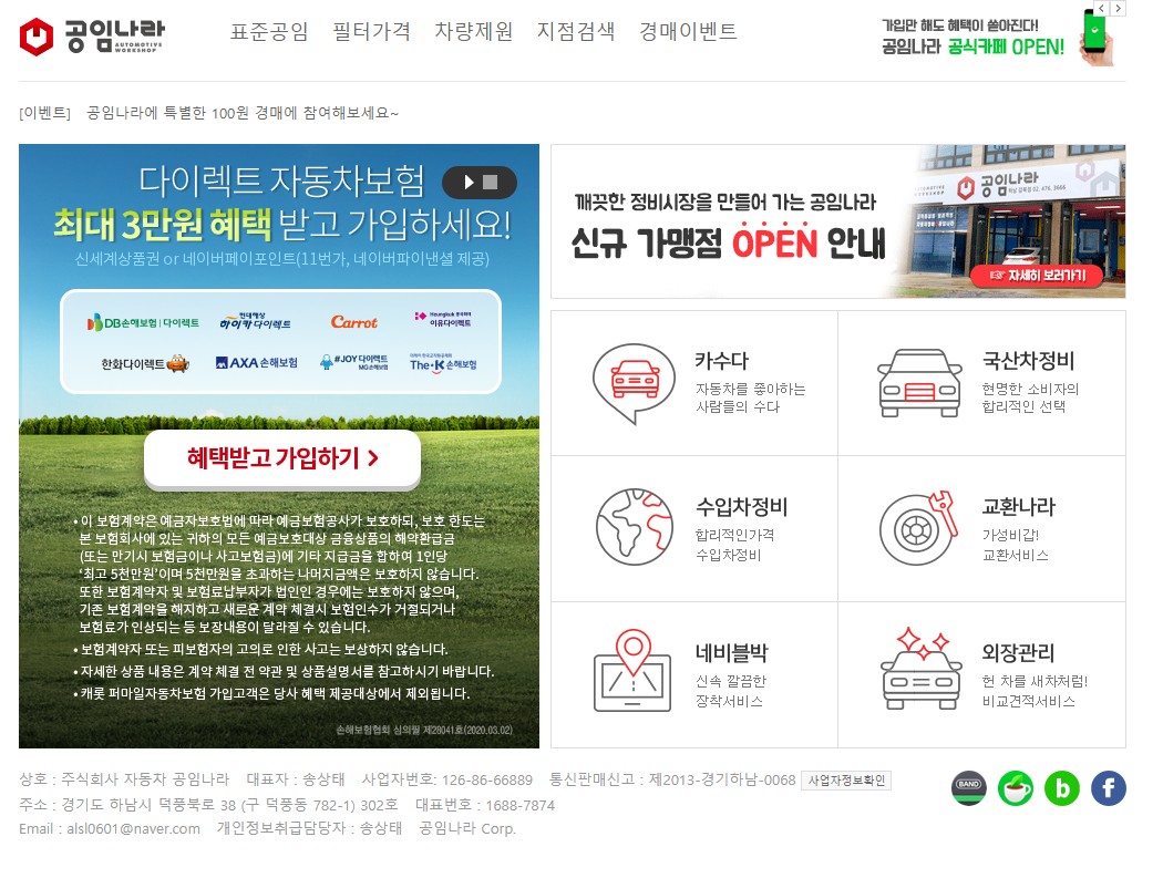 이런 문제점을 해결하기 위해서 생긴 자동차 정비 체인업체인 공임나라는 인터넷에서 예약을 한 뒤 엔진오일을 직접 구입해서 방문하면 공임비만 받고 교체가 가능한 곳이라 많은 사람들이 편리하게 이용하고 있는 곳이다.