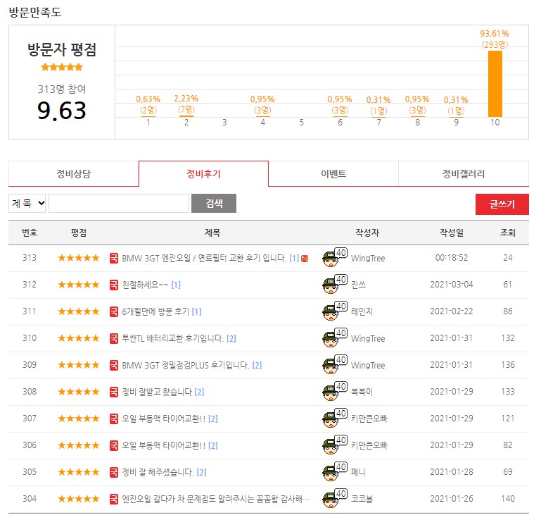 또한 업체의 평점을 잘 살펴보는 것이 중요하다. 공임나라 홈페이지에 가입하고 실제 정비를 받았던 사람들의 내용을 들어보면 대부분 평이 좋지만 평점이 낮은 리뷰들 또한 상당히 도움이 된다. 또한 정비 후기 뿐만 아니라 이벤트와 정비 갤러리 그리고 정비 상담을 통하여 이 곳이 온라인에서도 고객과 소통을 하는지 잘 찾아보는 것이 중요하다.