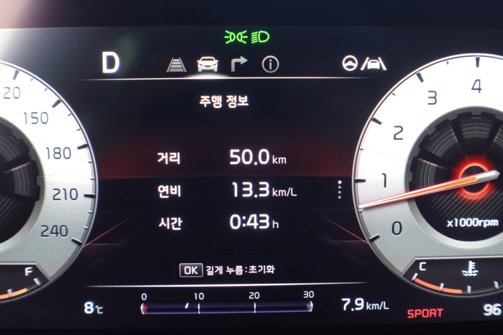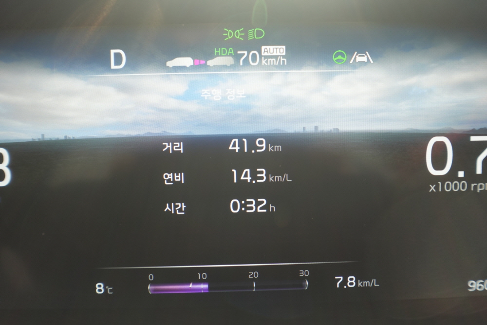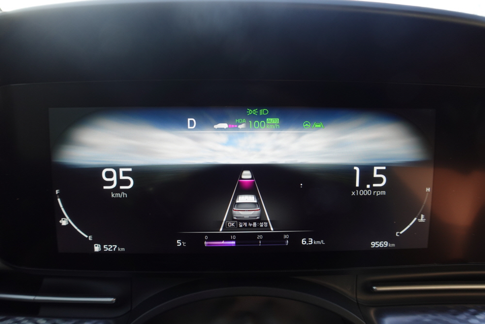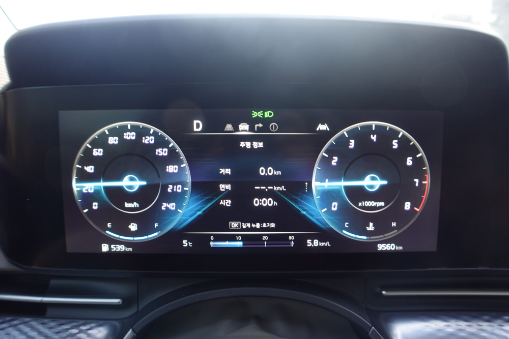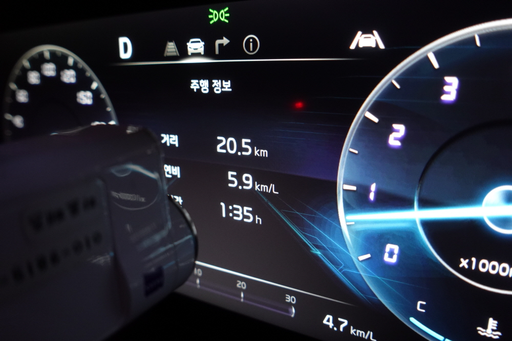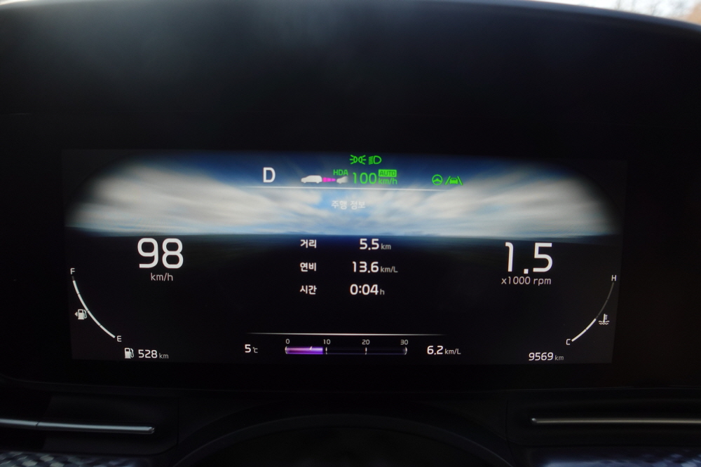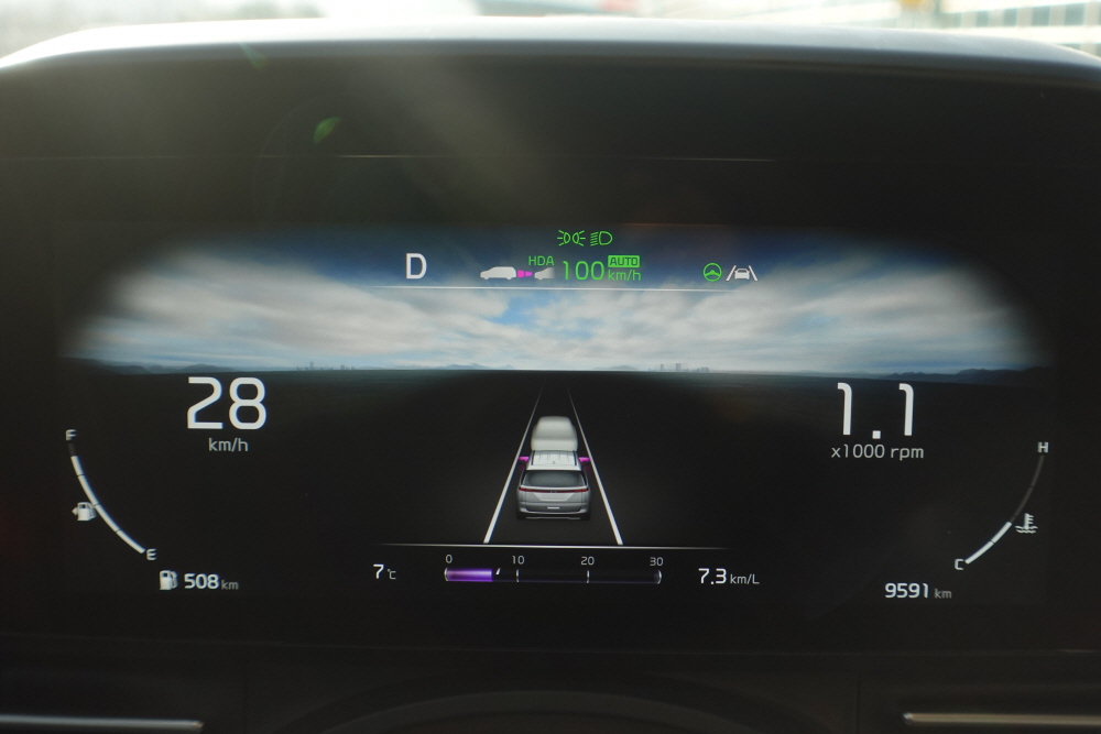 중간 중간 정체구간을 만나기도 했기에 시작부터 끝까지 고속 연비를 체크하기는 애매했다. 또한 출근 시간대여서 그런지 끼어드는 차량도 많았지만 어댑티브 크루즈 컨트롤의 사용으로 커다란 차량을 주행하면서 크게 불편하거나 피곤한 느낌은 없었다.