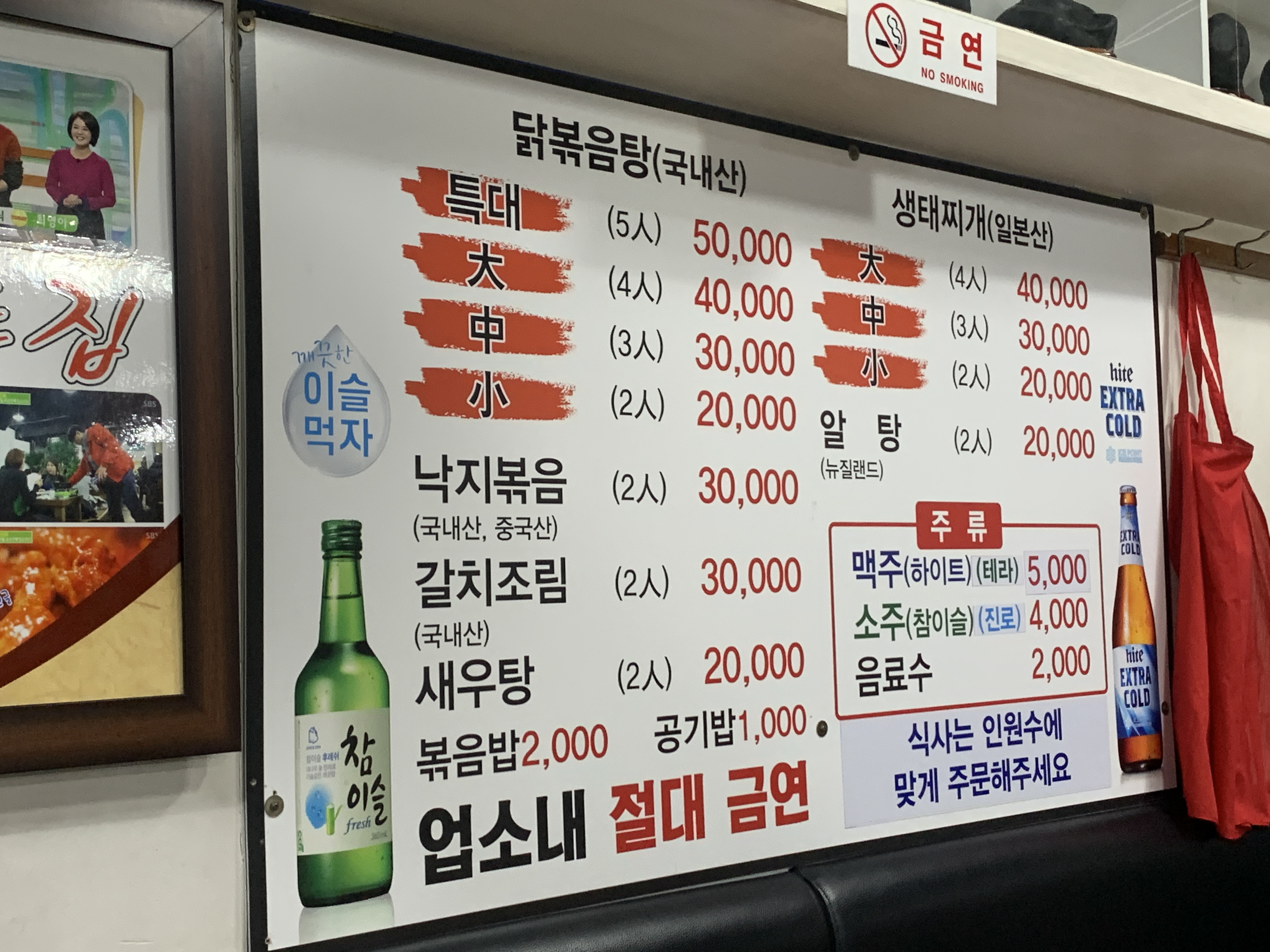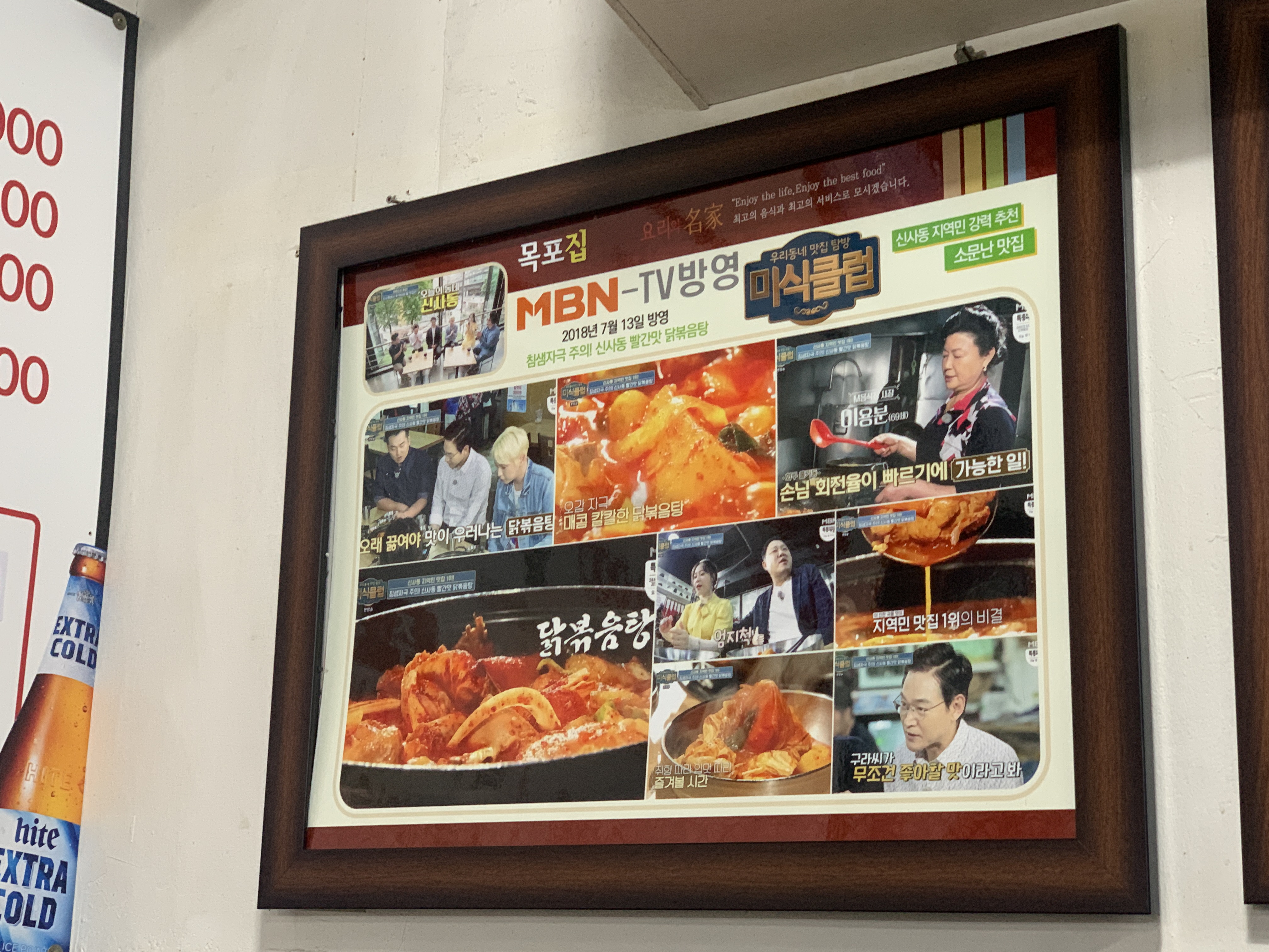 신사역 맛집인 목포집에 닭볶음탕은 기본 1인 1만 원 수준으로 꽤 저렴하다. 강남 신사역 맛집 중 이정도의 가성비를 가진 식당이 있을까? 라고 생각이 들었으며 서브 메뉴로 낚지볶음과 갈치조림 그리고 새우탕이 있으며 생태찌개 또한 이 곳에 별미로 자리잡고 있다. 이 곳은 오랜시간동안 유명해지면서 다양한 TV 매체와 신문에도 나올 정도로 유명한 곳이다.