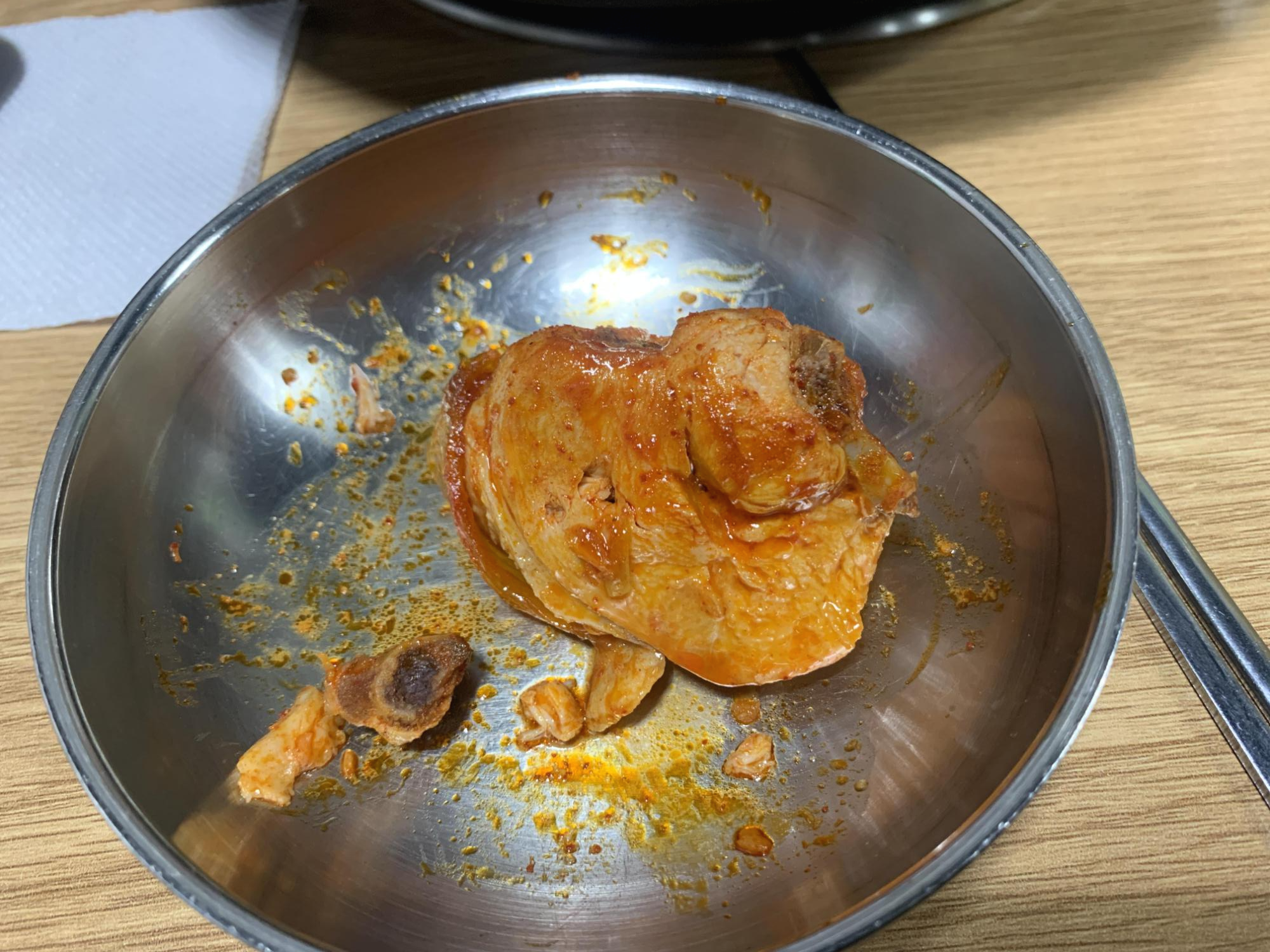닭볶음탕에 들어간 닭은 살이 두툼하게 꽤 넉넉한 양으로 술과 밥을 동시에 먹을 수 있는 아주 맛 좋은 안주가 아닐까 생각된다. 꽤 오래된 곳의 가로수길 맛집이지만 20대부터 60대까지 다양한 연령층의 손님을 만나볼 수 있었는데 다양한 연령층이 오는 이유는 남녀노소 누구나 좋아할 양념에 비법이 있을 것이라 생각되었다. 또한 감자도 퍽퍽하지 않아서 함께 먹기에 좋다.