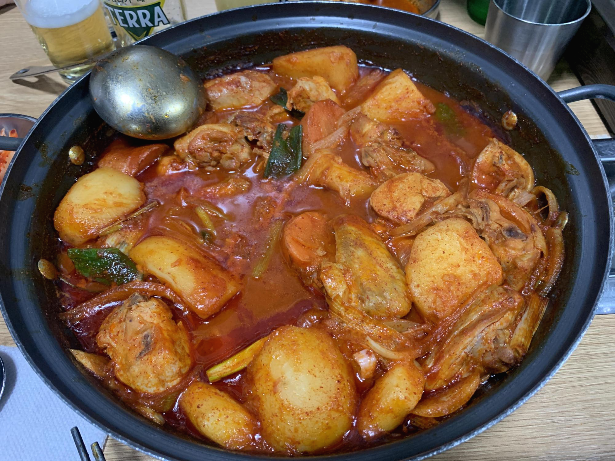 닭볶음탕에 들어간 닭은 살이 두툼하게 꽤 넉넉한 양으로 술과 밥을 동시에 먹을 수 있는 아주 맛 좋은 안주가 아닐까 생각된다. 꽤 오래된 곳의 가로수길 맛집이지만 20대부터 60대까지 다양한 연령층의 손님을 만나볼 수 있었는데 다양한 연령층이 오는 이유는 남녀노소 누구나 좋아할 양념에 비법이 있을 것이라 생각되었다. 또한 감자도 퍽퍽하지 않아서 함께 먹기에 좋다.