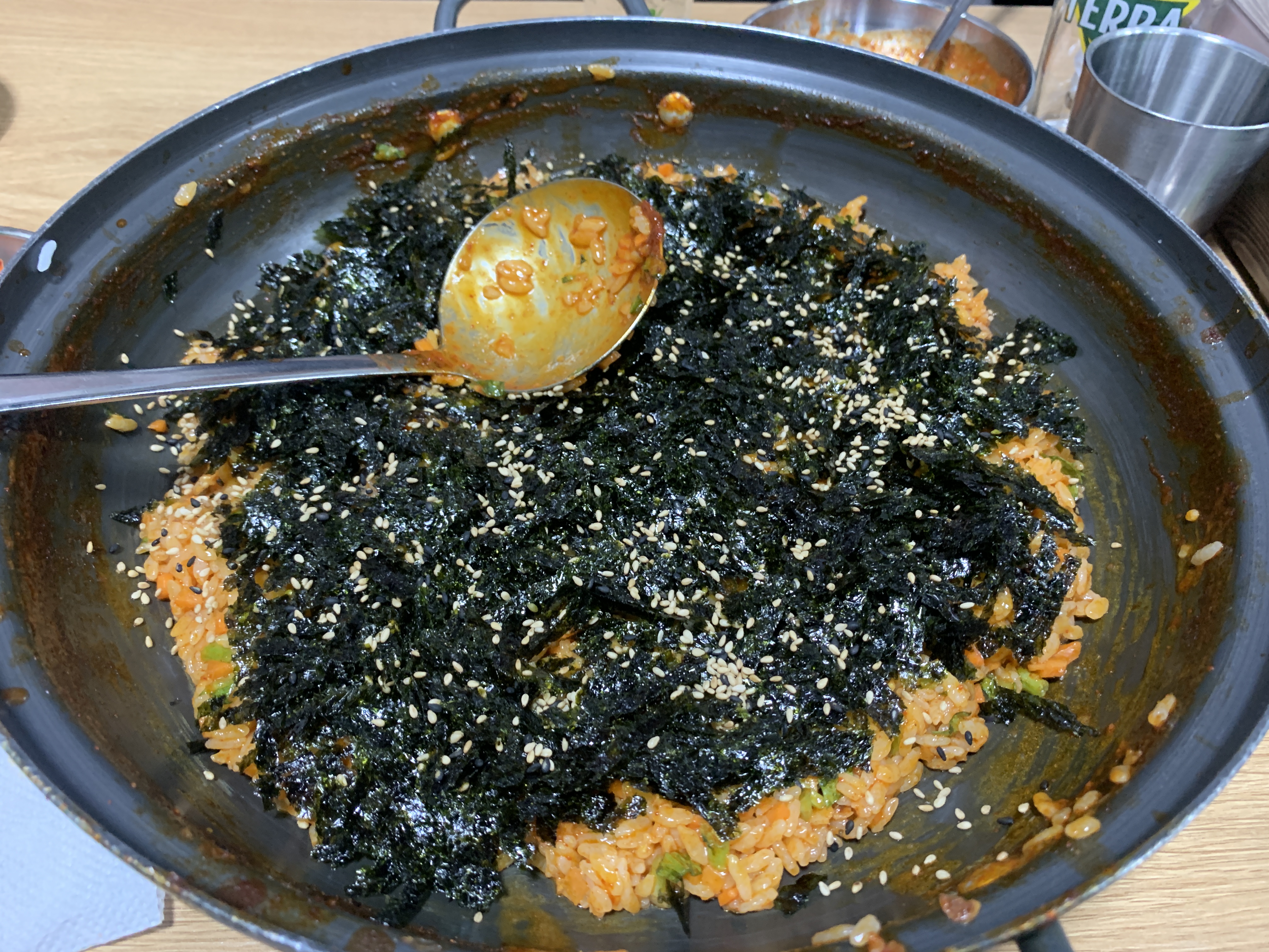 닭볶음탕이 어느정도 양이 줄어들었다면 볶음밥은 무조건 필수로 먹어야하는 코스이다. 신사 목포집에 오는 손님들 모두 볶음밥을 먹으며 남은 국물을 살짝 얻어져서 먹으면 정말 맛 좋은 한끼 식사가 될 수가 있다.