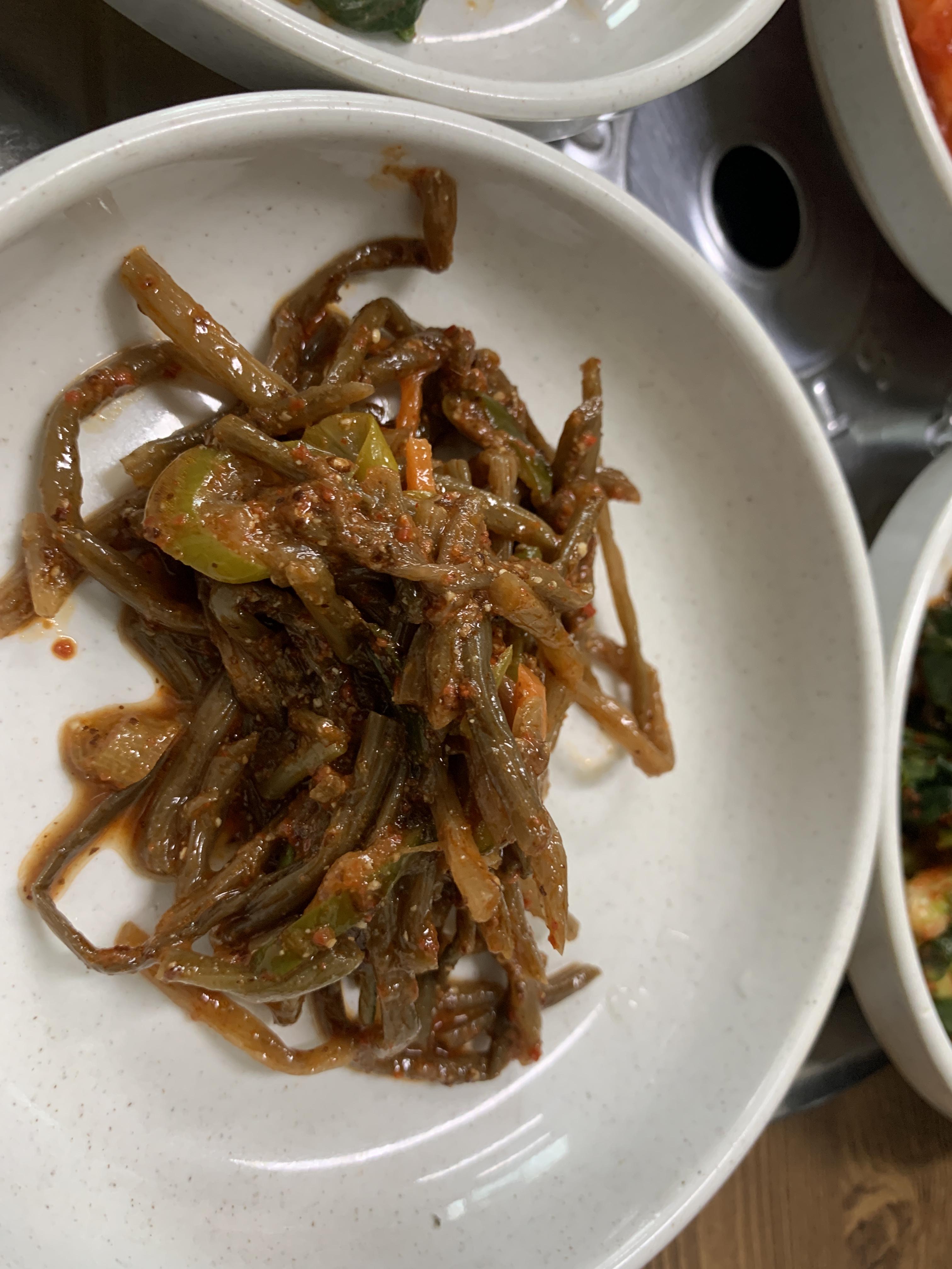 사실 이 곳에서 가장 맛있게 먹었던건 나물 반찬이였습니다. 사실 별거 없는거 같은데 엄마가 해주는 맛으로 꽤 괜찮은 맛을 가지고 있으며 신선한 나물들이 식욕을 돋궈주고 있었습니다. 아마도 밥이 먼저 나왔다면 나물 반찬으로 한 공기를 먹었을텐데 그럴까봐 미리 밥은 안 주신게 아닌가라고 생각이 들 정도로 맛있습니다.
