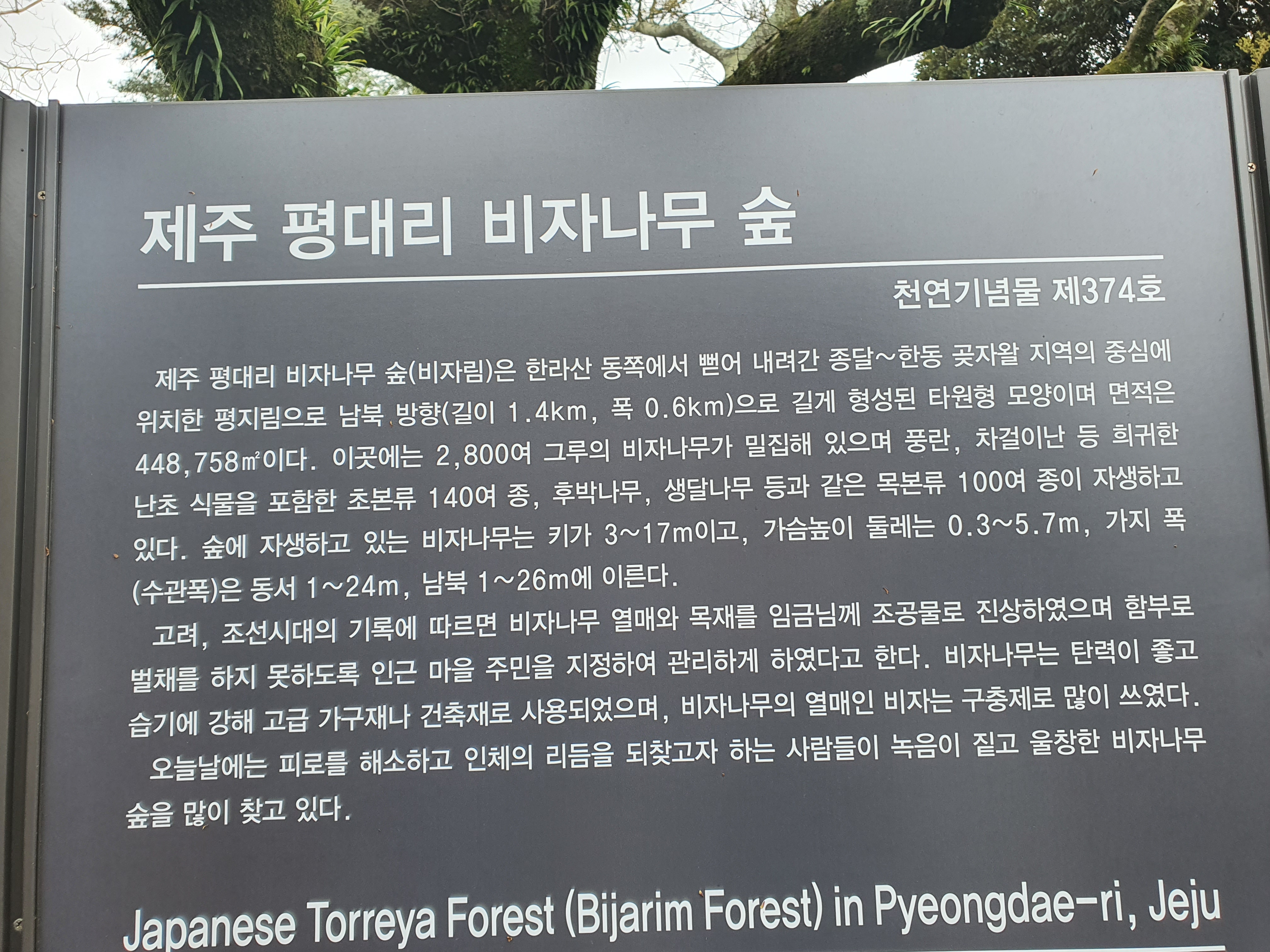 제주도 평대리에 위치한 비자나무 숲으로 유명한 비자림은 천연기념물 제 374호로 지정되어 있으며 대략 2,800여 그루의 비자나무가 밀집 되어 있는 곳입니다. 뿐만 아니라 한국에서 보기 힘든 식물과 나무가 자라고 있는 곳으로 유명합니다. 이 곳은 최근에 유명해진 곳은 아니며 고려시대부터 비자나무 열매와 목재를 진상하기 위하여 관리되어 있는 곳이였으며 고급 나무나 건축자재로 많이 사용된다고 합니다.