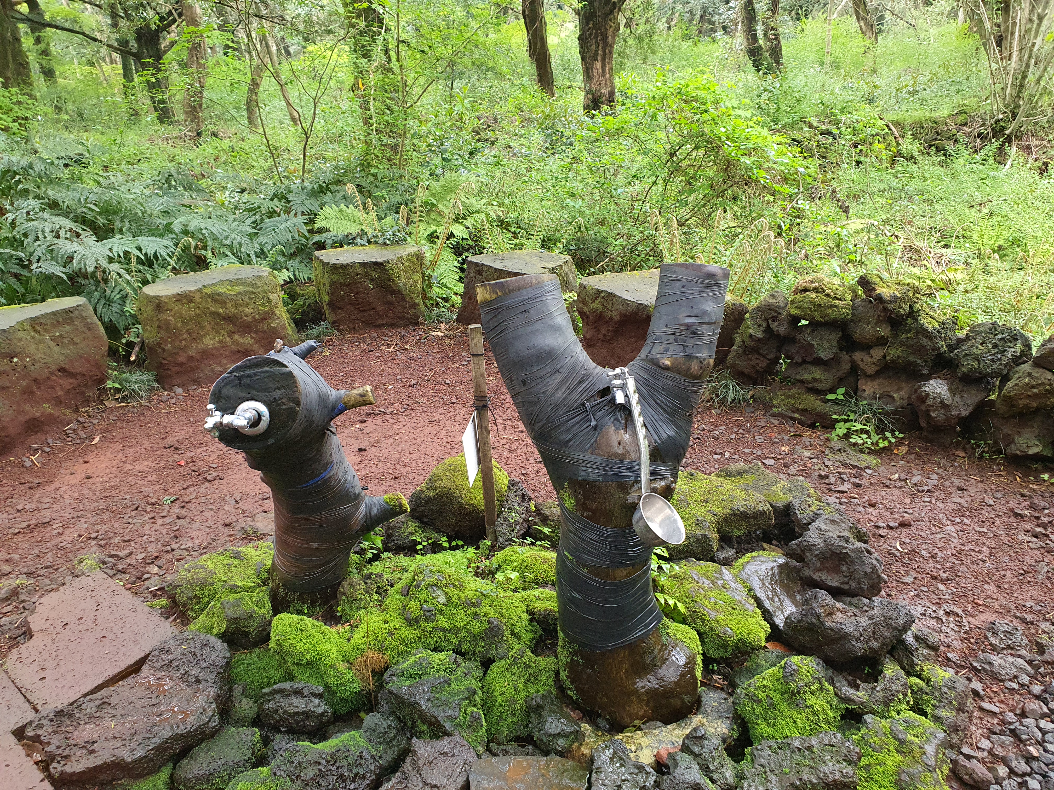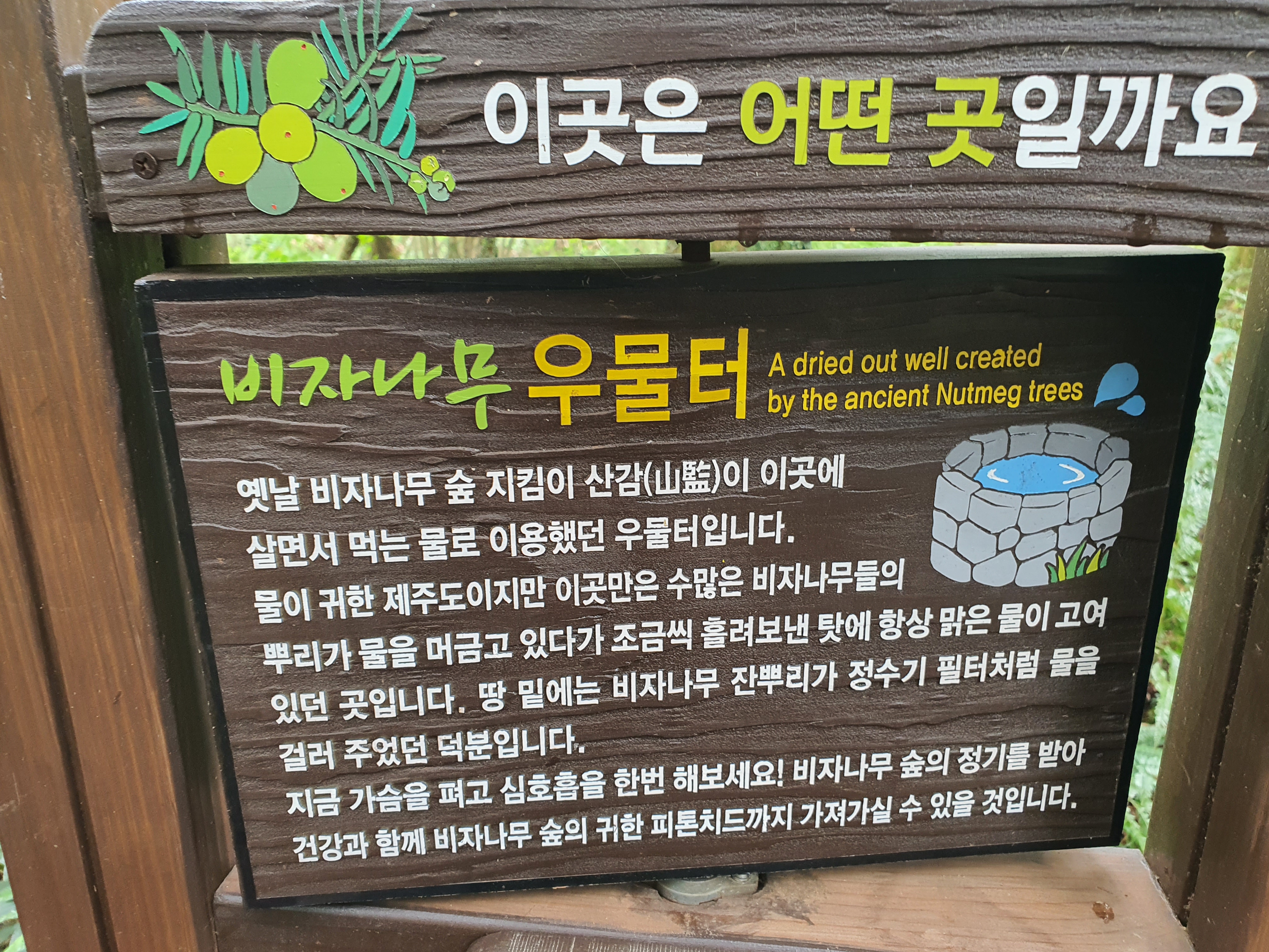 걷다보면 이렇게 제주도 비자림 비자나무 우물터도 만나볼 수 있습니다. 숲을 지키는 산감이 이 곳에 살면서 먹는 물로 사용하던 우물터로 비자나무가 정수기 필터 역할을 하기에 물 맛이 좋은 곳이기도 합니다. 하지만 코로나로 인하여 직접 마셔보지는 않았습니다.