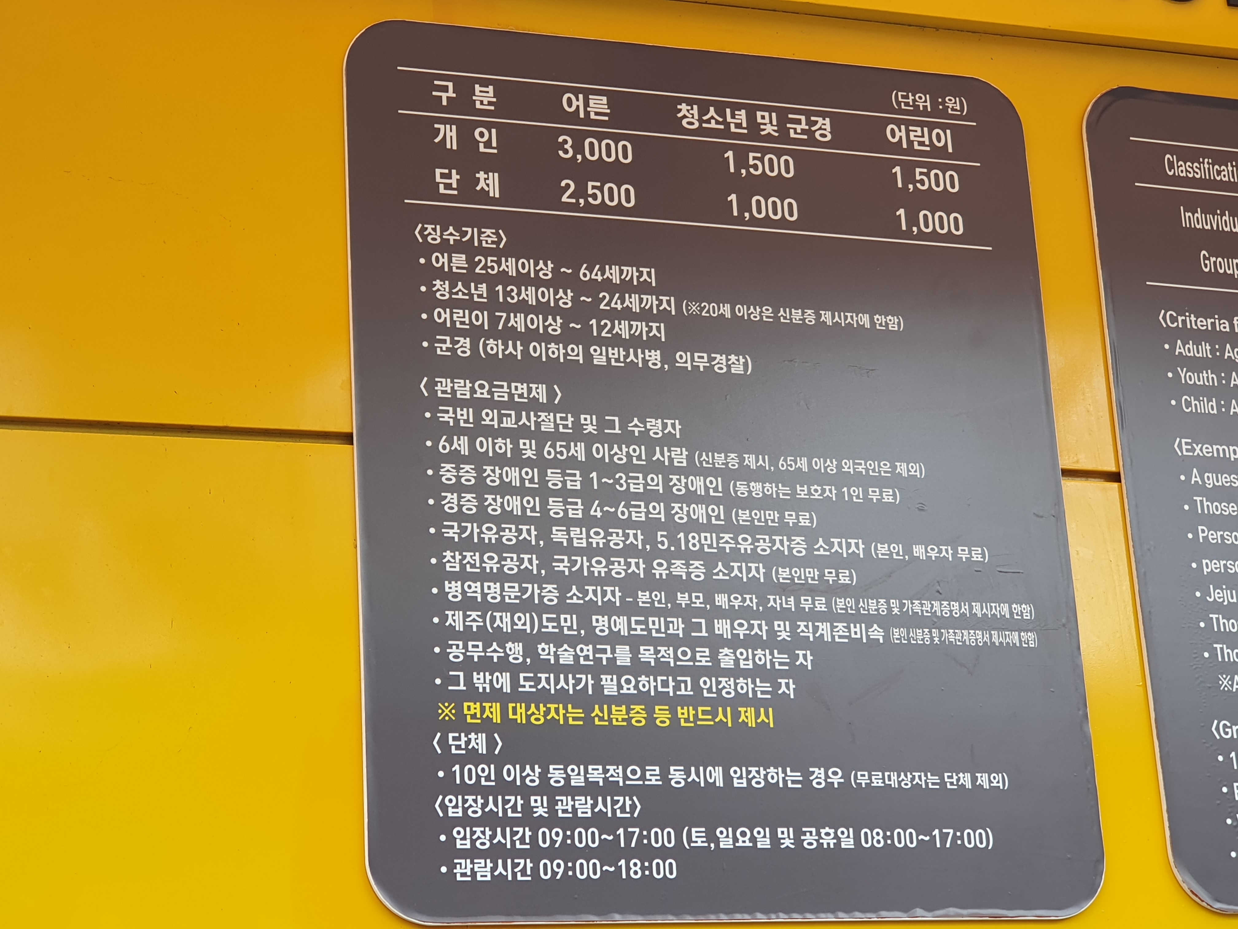 어른 3,000원 / 어린이 1,500원 수준이며 주차장이 따로 있지만 사람들이 몰리면 주차장에 자리가 조금 부족한 것을 제외하면 제주도에서 꼭 가야할 곳 중 한 곳입니다. 입장시간은 오전 9시부터 오후 17시까지 운영되며 주말에는 1시간 빨리 개장합니다.