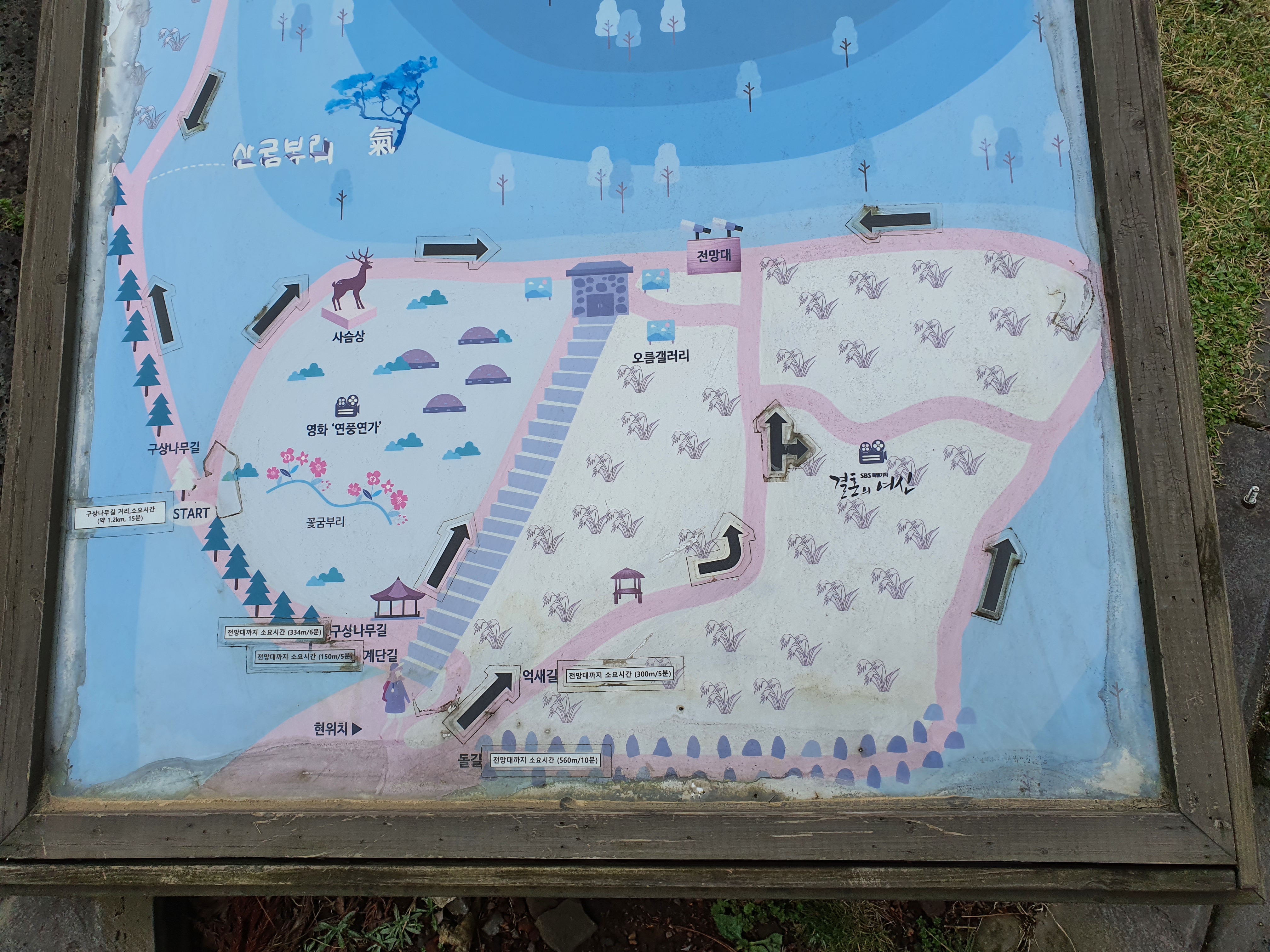 제주 산굼부리는 다양한 영화와 드라마의 촬영 장소로 활용되었는데요. 연풍연가와 결혼의 여신 등 이 곳에서 촬영했다고 합니다. 총 3가지 길이 있는데요. 움직이기 편하신 곳으로 이동하시면 됩니다.