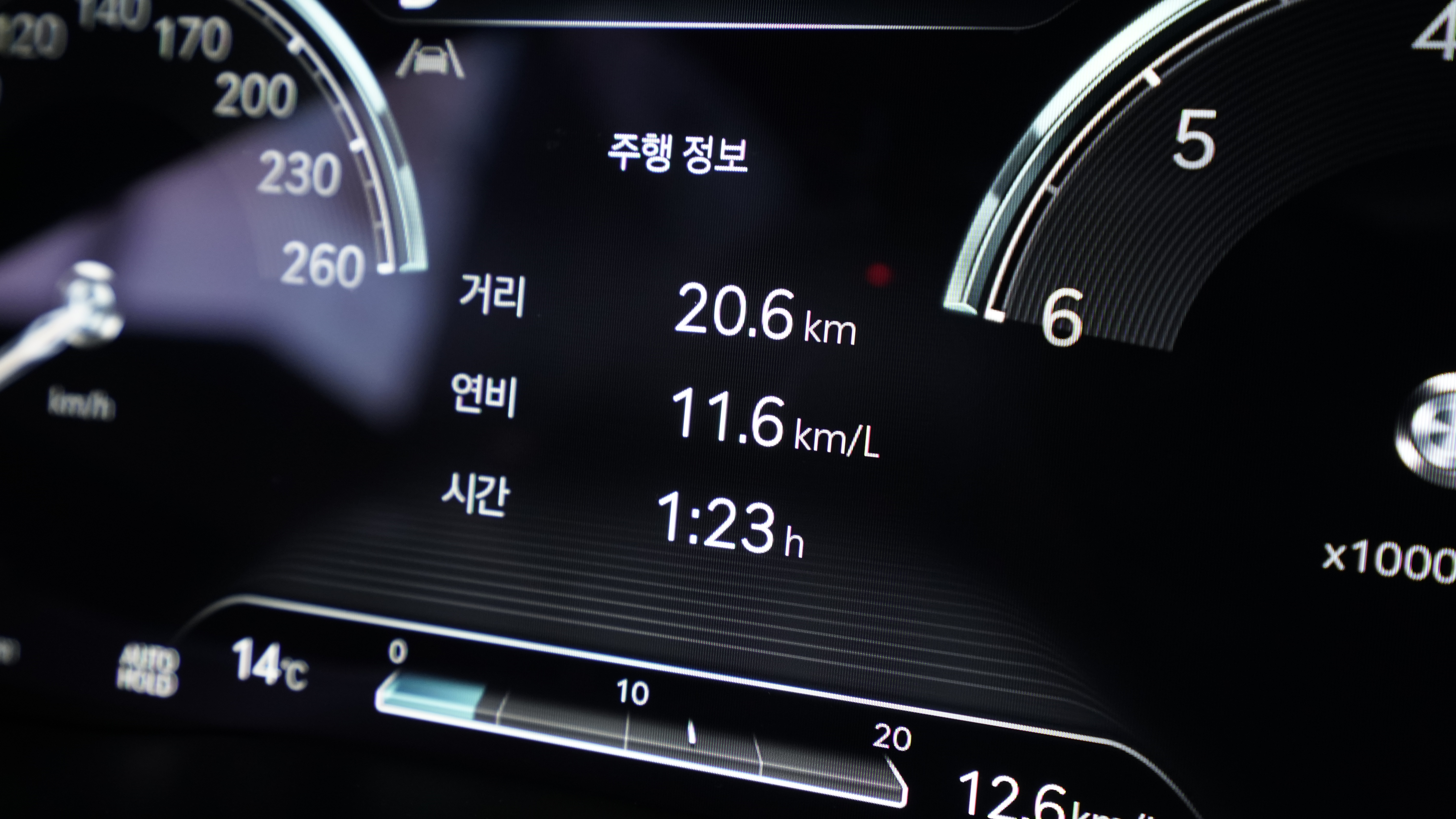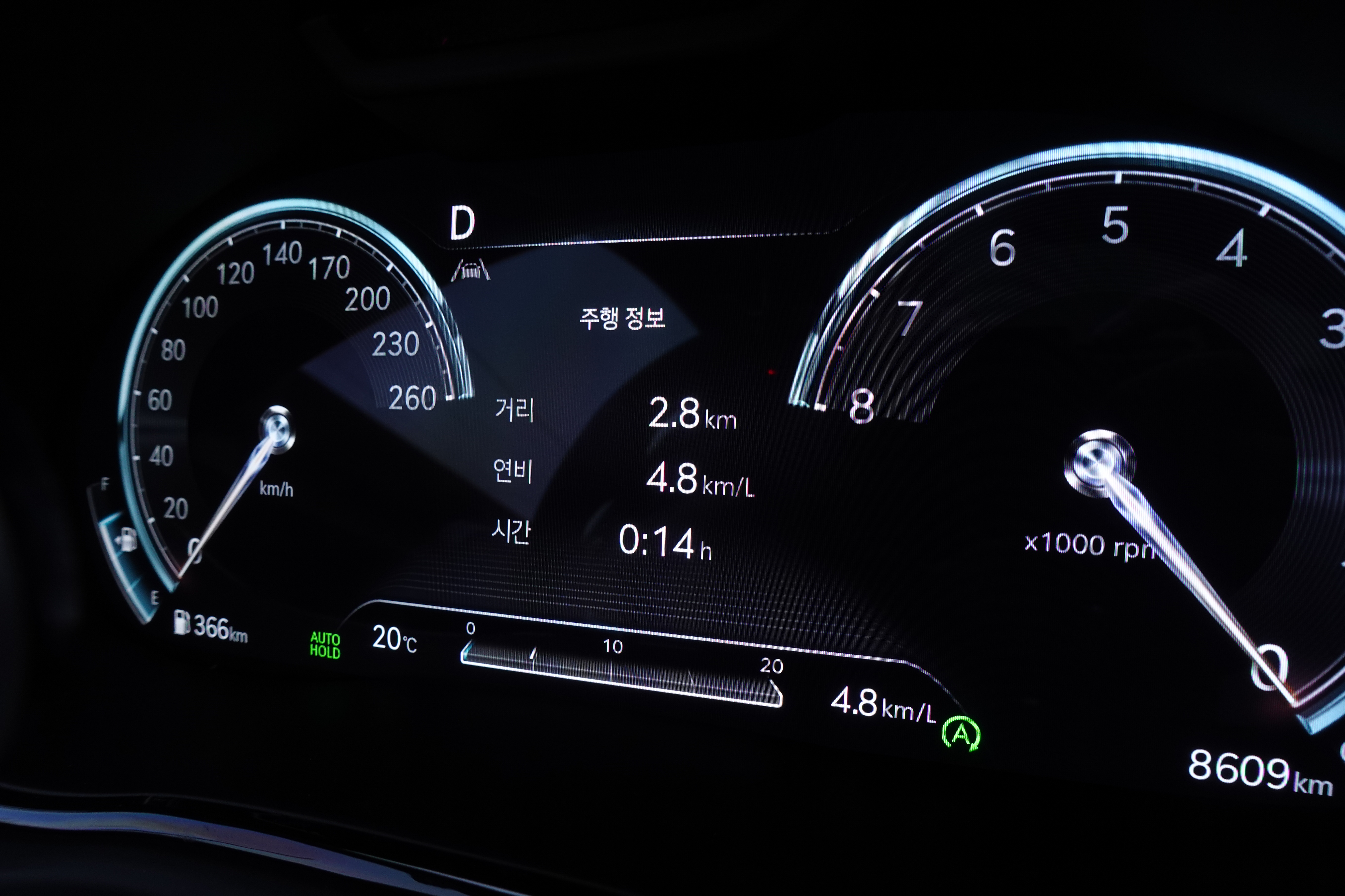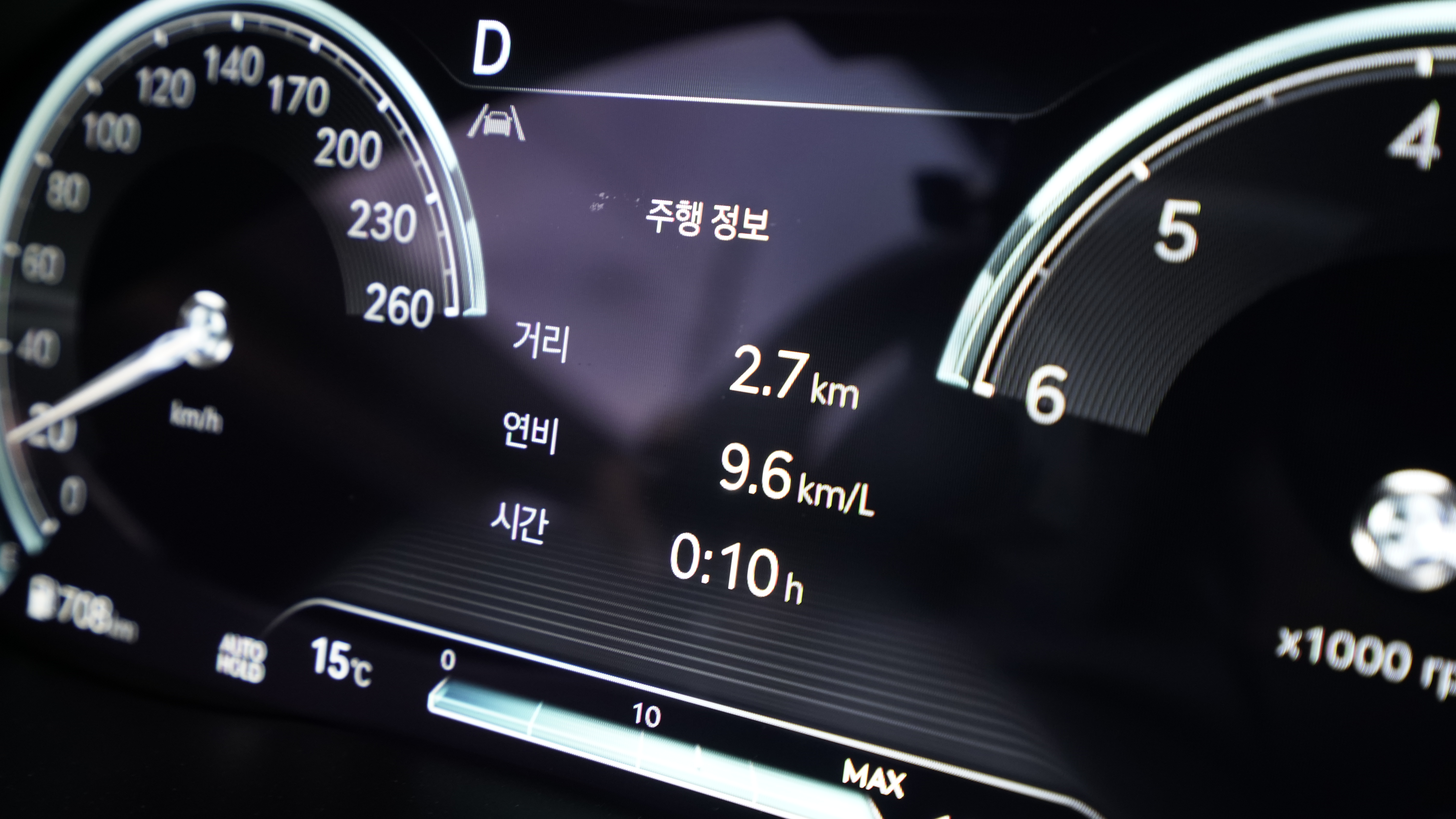고속도로에서 24.7km를 주행한다면 대략적으로 20분정도면 도착하겠지만 강남의 퇴근길을 뚫고와서 그런지 꽤 많이 막혔습니다. 특히나 2.5 가솔린 터보 모델은 금요일에 테스트를 해서 그런지 정말 많은 정체를 보여줬으며 총 2시간 38분이 소요되어 5.5km/L라는 연비를 보여줬습니다.