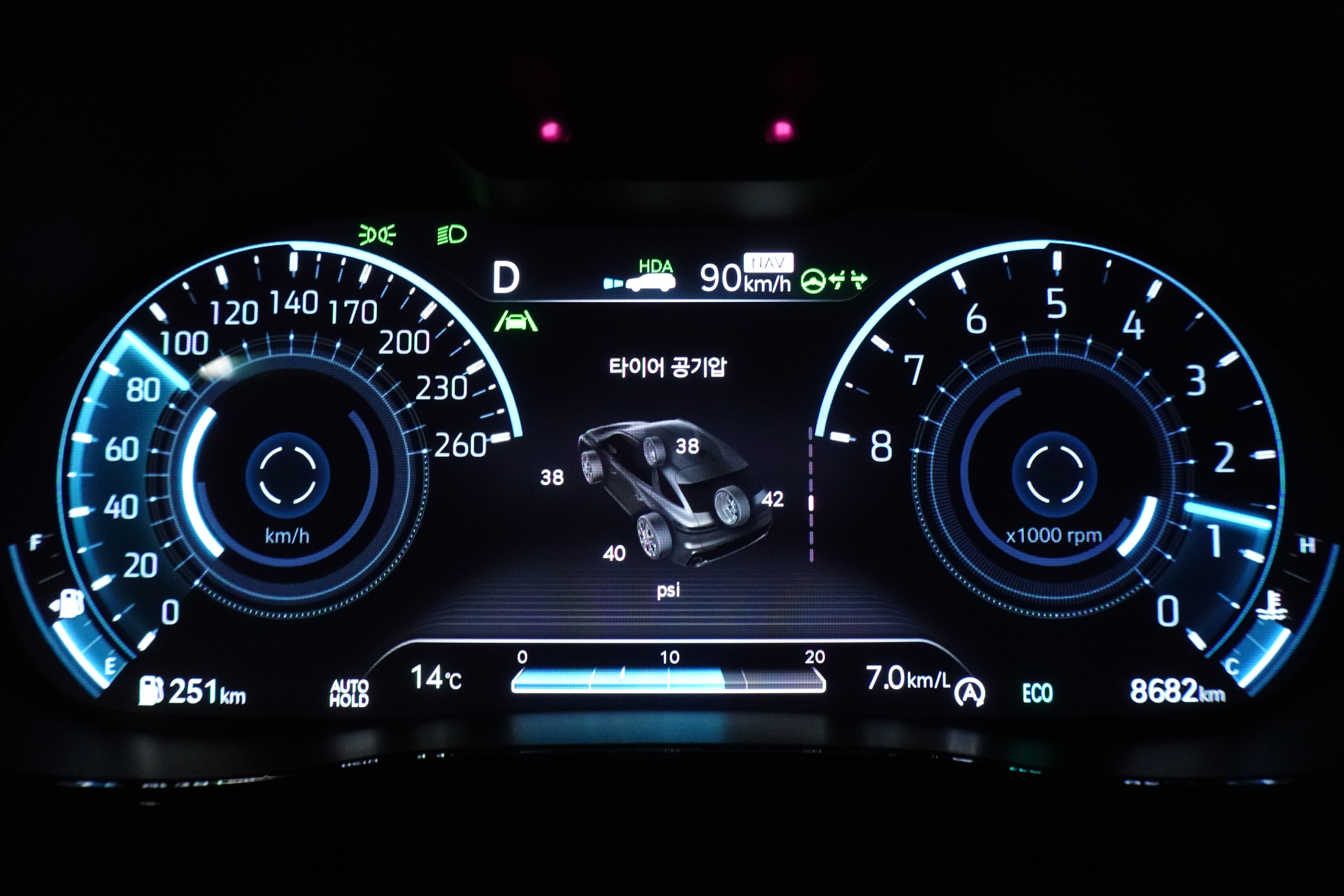 2.5 가솔린 터보 모델과 3.5 가솔린 터보 모델을 고속도로에서 고 RPM을 막 달린다면 확실한 연비 차이를 보여주지만 도심 도로에서는 글쎄요.. 생각보다 비슷한 수준 혹은 공인 연비와 비슷한 1~1.5km/L 수준 차이를 보여줬습니다.