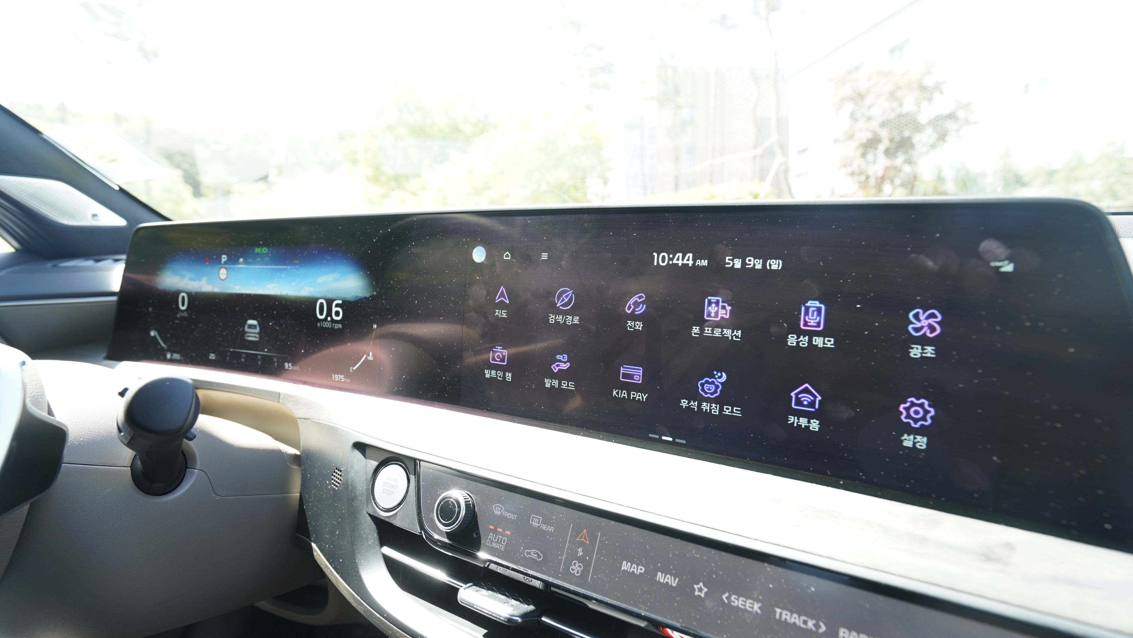 기아 K8 실내 디자인은 기아 K7와 아주 큰 차이가 없어보이지만 하나 하나 뜯어보면 굉장히 많이 달라졌다는 점을 알 수가 있습니다. 우선 12.3인치 슈퍼비전 클러스터와 12.3인치 내비게이션을 하나로 합쳐놓은 파노라믹 커브드 디스플레이 모델입니다. 그렌저 모델에서는 이 두 개가 붙어있는 듯하지만 떨어져 있는 이음새가 있지만 이 새로운 모델에는 그런 부분이 없습니다. 물론 옵션을 선택하지 않는다면 계기판은 4.2인치 TFT 계기판와 8인치 인포테인먼트가 적용되기에 반드시 이 부분의 옵션은 필요해보입니다.
