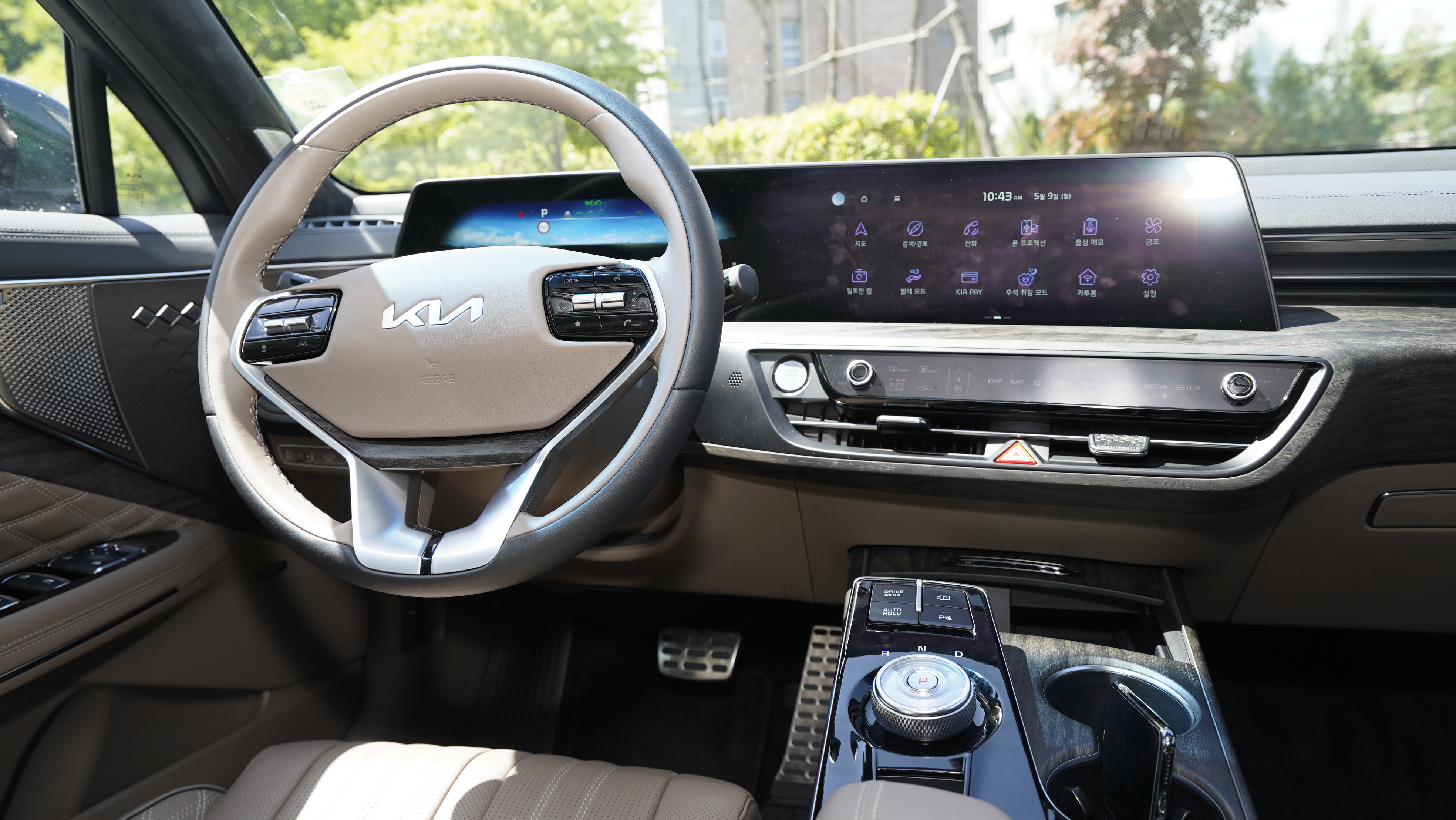 기아 K8 실내 디자인은 기아 K7와 아주 큰 차이가 없어보이지만 하나 하나 뜯어보면 굉장히 많이 달라졌다는 점을 알 수가 있습니다. 우선 12.3인치 슈퍼비전 클러스터와 12.3인치 내비게이션을 하나로 합쳐놓은 파노라믹 커브드 디스플레이 모델입니다. 그렌저 모델에서는 이 두 개가 붙어있는 듯하지만 떨어져 있는 이음새가 있지만 이 새로운 모델에는 그런 부분이 없습니다. 물론 옵션을 선택하지 않는다면 계기판은 4.2인치 TFT 계기판와 8인치 인포테인먼트가 적용되기에 반드시 이 부분의 옵션은 필요해보입니다.