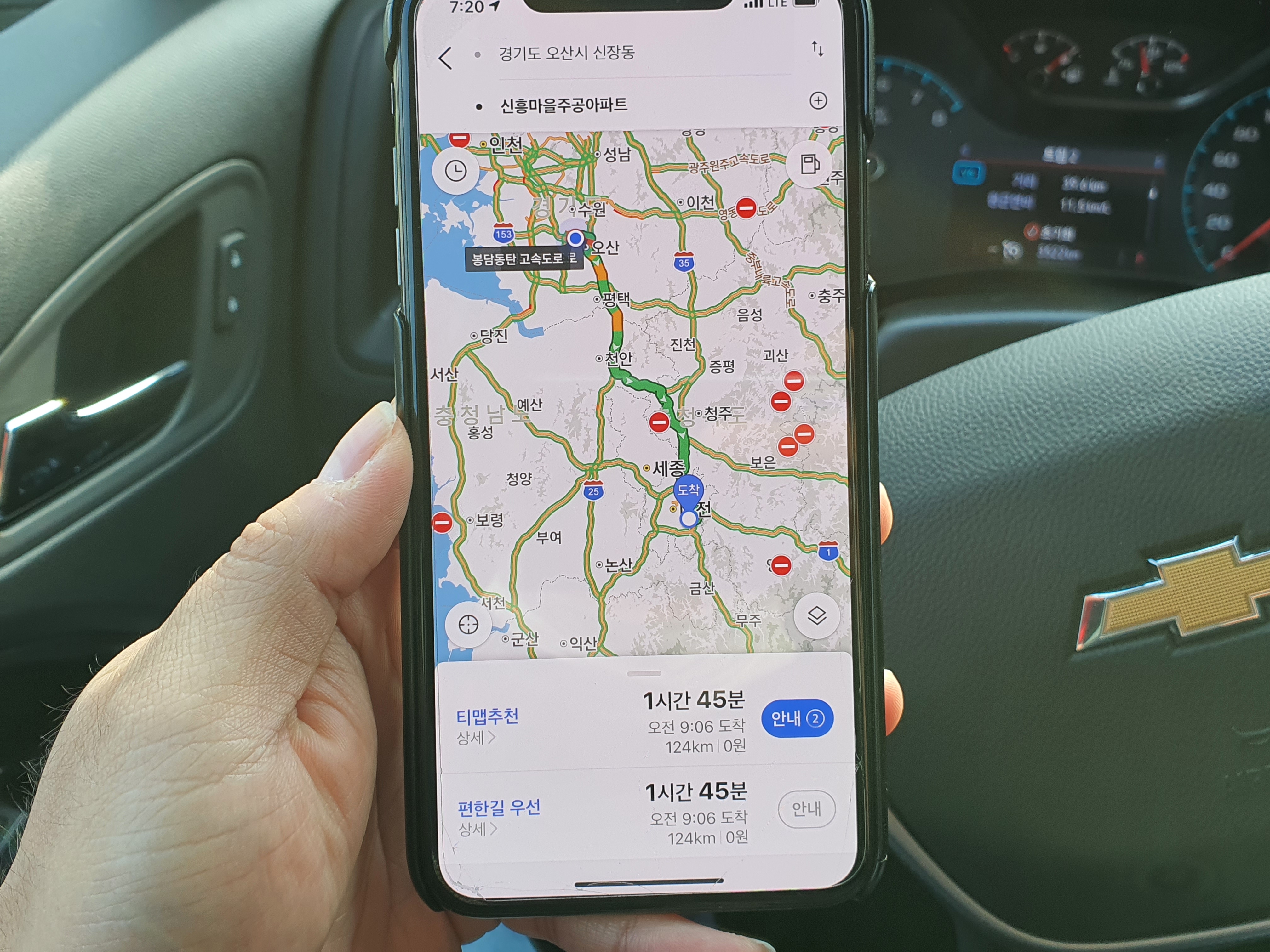 쉐보레 볼트 EV 모델로 경기 광명을 출발하여 오산 휴게소에서 80%까지 충전 후 어느정도 주행 가능한지 테스트를 해보기로 했다. 오산 휴게소에서 대전을 거쳐 라한셀렉트까지 총 주행거리 343km의 주행을 테스트했다.