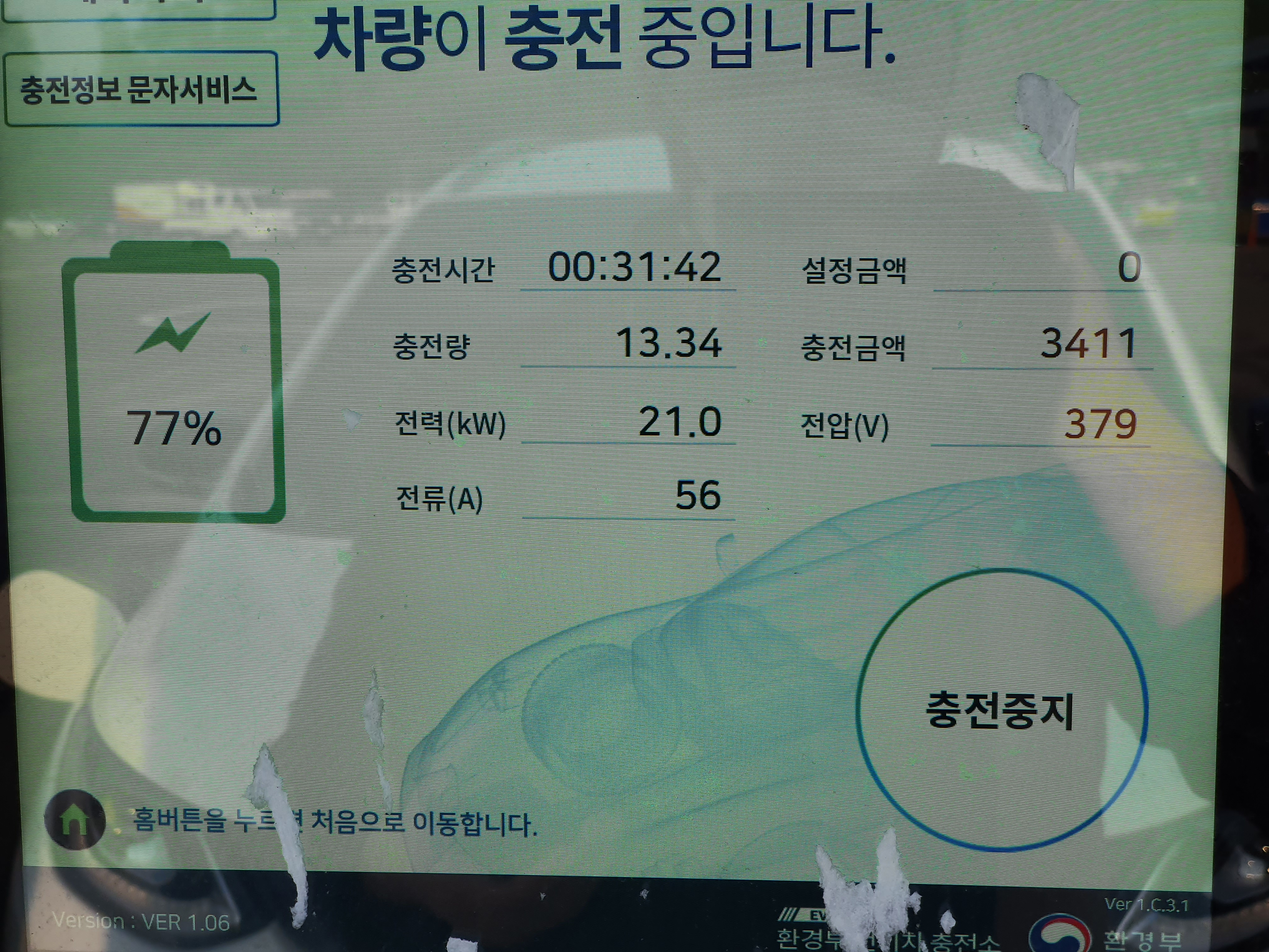 따라서 서울에서 100% 충전을 마치고 부산까지 출발한다면 충분히 주행이 가능하며 중간에 휴게소에서 점심식사 혹은 커피 한 잔을 마시며 휴식을 취할 때마다 충전한다면 특별히 불편함은 없이 주행이 가능했다.