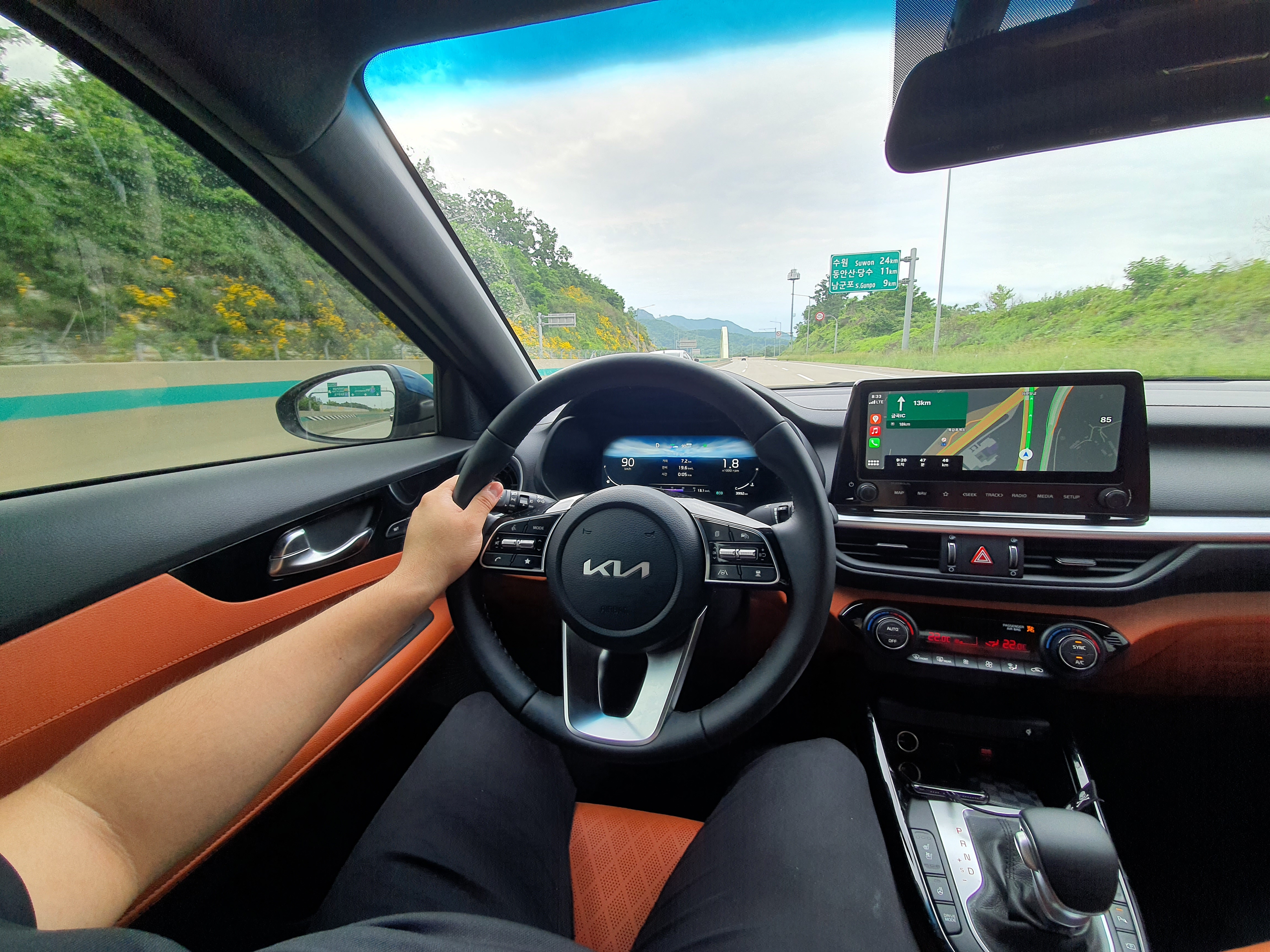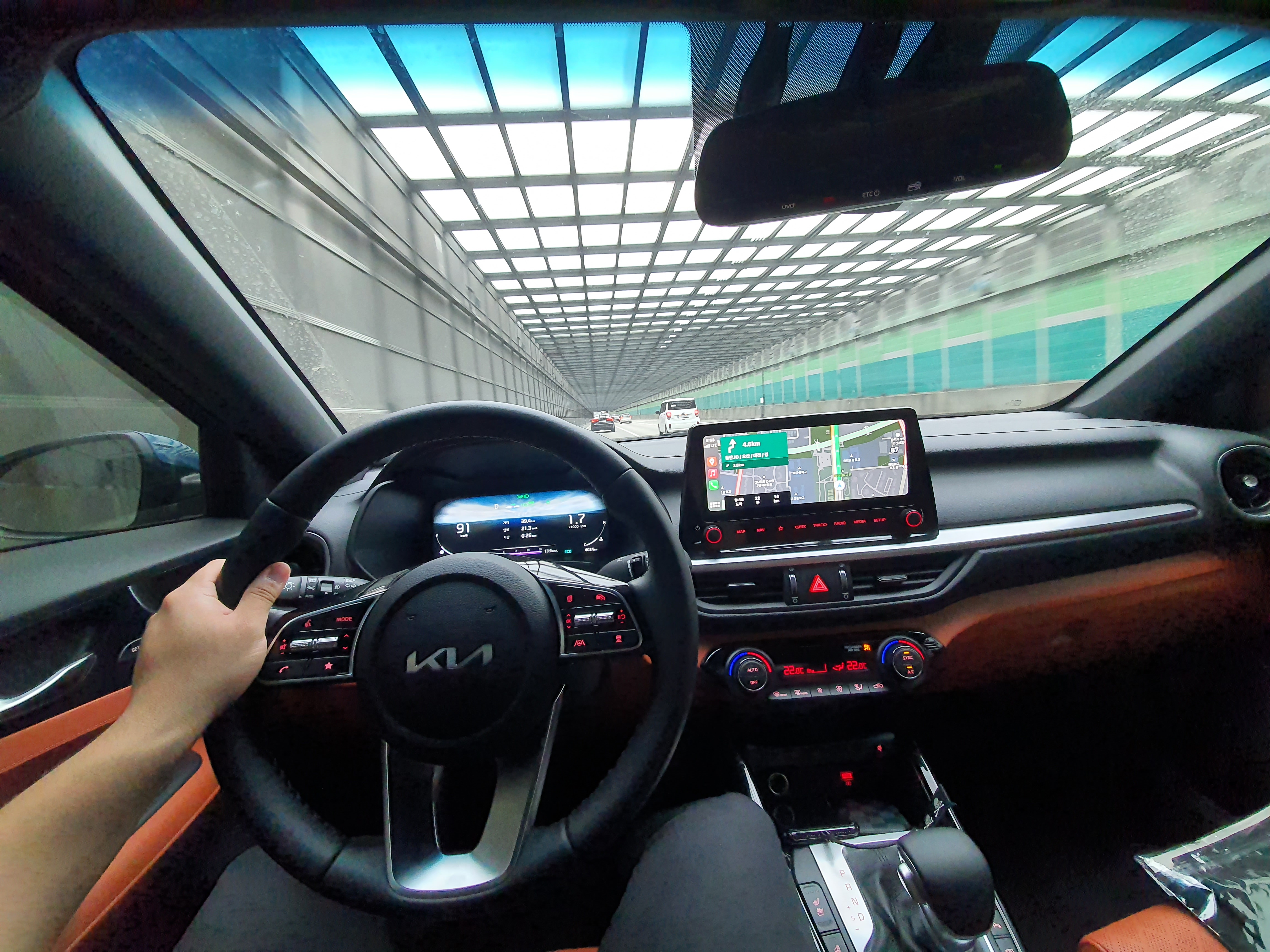 고속도로에서 안전 주행속도에 맞춰서 주행해본 느낌으로는 차량이 이전 보다 확실히 단단한 느낌이 강했다. 특히나 연비적인 부분에서는 스마트스트림 G1.6 가솔린 엔진에 IVT 무단 변속기가 결합하여 대략적으로 20km/L 이상대의 연비를 보여줬다. 하지만 시내주행에서 막히는 도로에서는 8km/L대를 보여주며 동일한 파워트레인이 적용된 아반떼와 베뉴에 비해서 시내 연비는 다소 떨어지는 것을 볼 수 있었다.