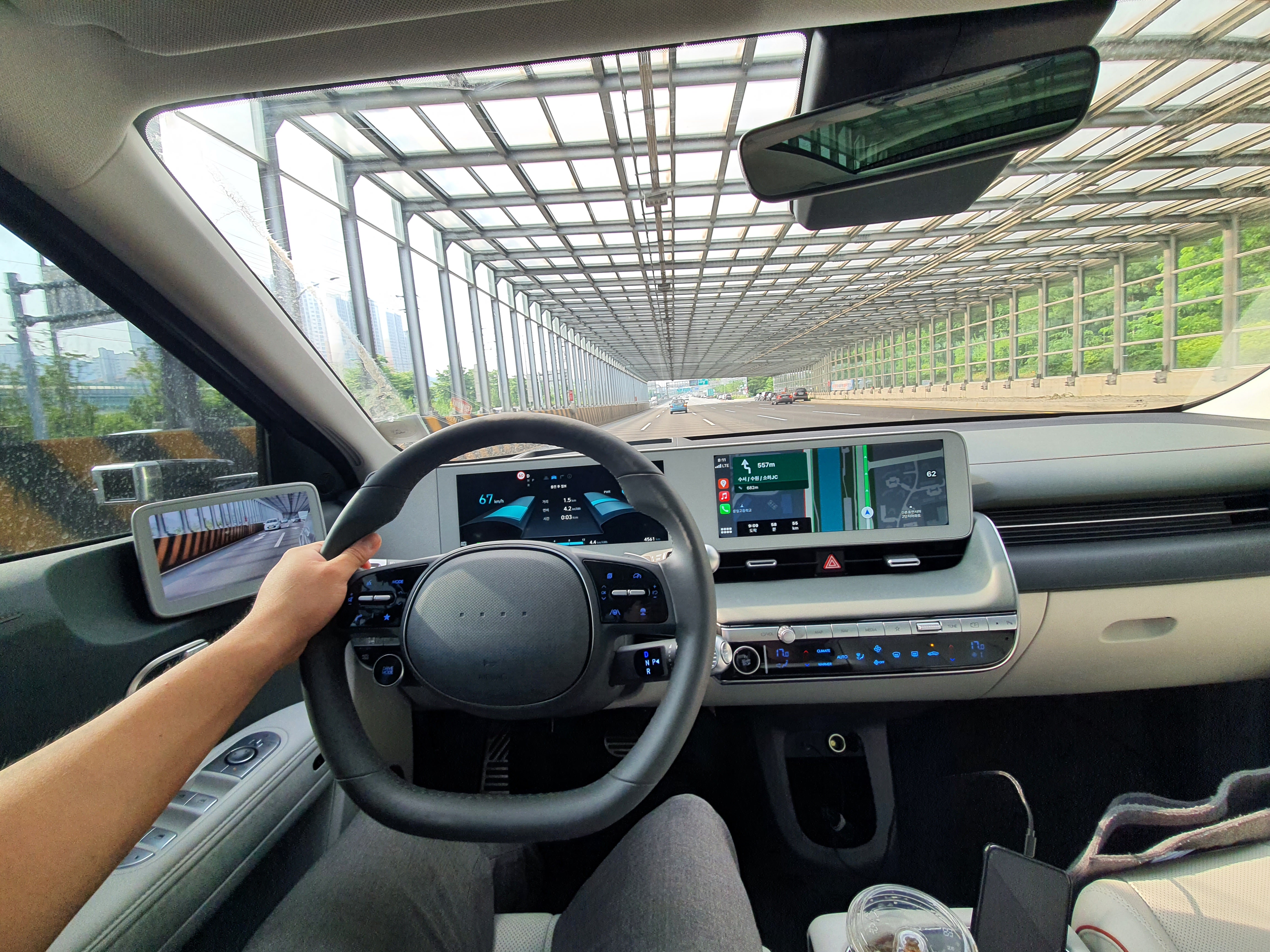 아이오닉5 시승기를 위해서 이 차량을 약 5일간 시승을 해봤다. 막히는 도로부터 시작해서 고속도로 그리고 비오는 날 맑은 날 모두 시승해보면서 가장 큰 느낀점은 생각보다 주행거리가 길다는 점이다. 공인 1회 충전 시 주행거리는 과격하게 과속만 안한다면 그 이상의 주행거리를 보여주기에 불만족스러운 부분이 없으며 차량에 상품 구성 또한 꽤 꼼꼼하게 만들어 놓았기 때문에 실제로 시승해보고 만져보면 정말 사고 싶어지는 차량이다.