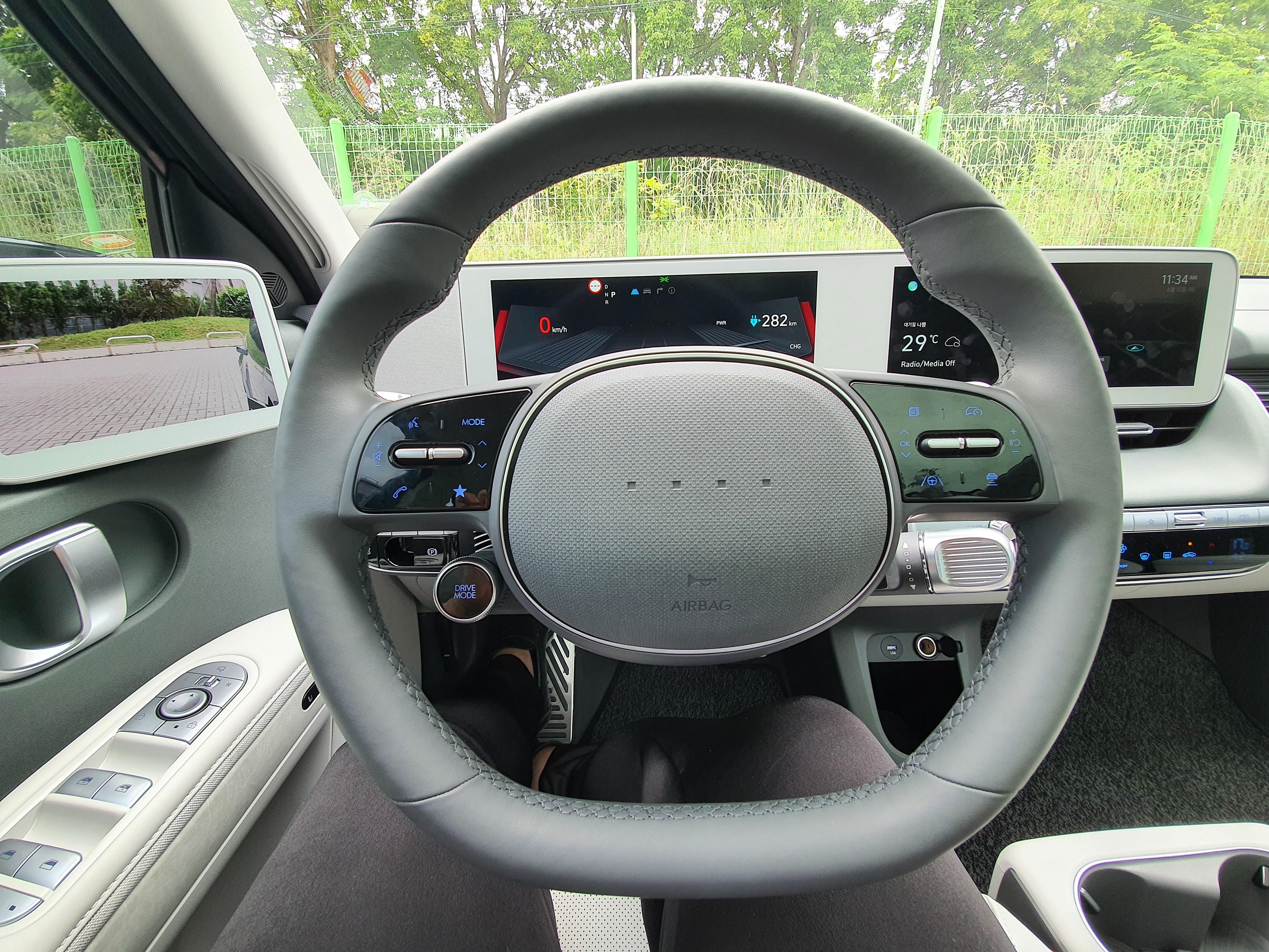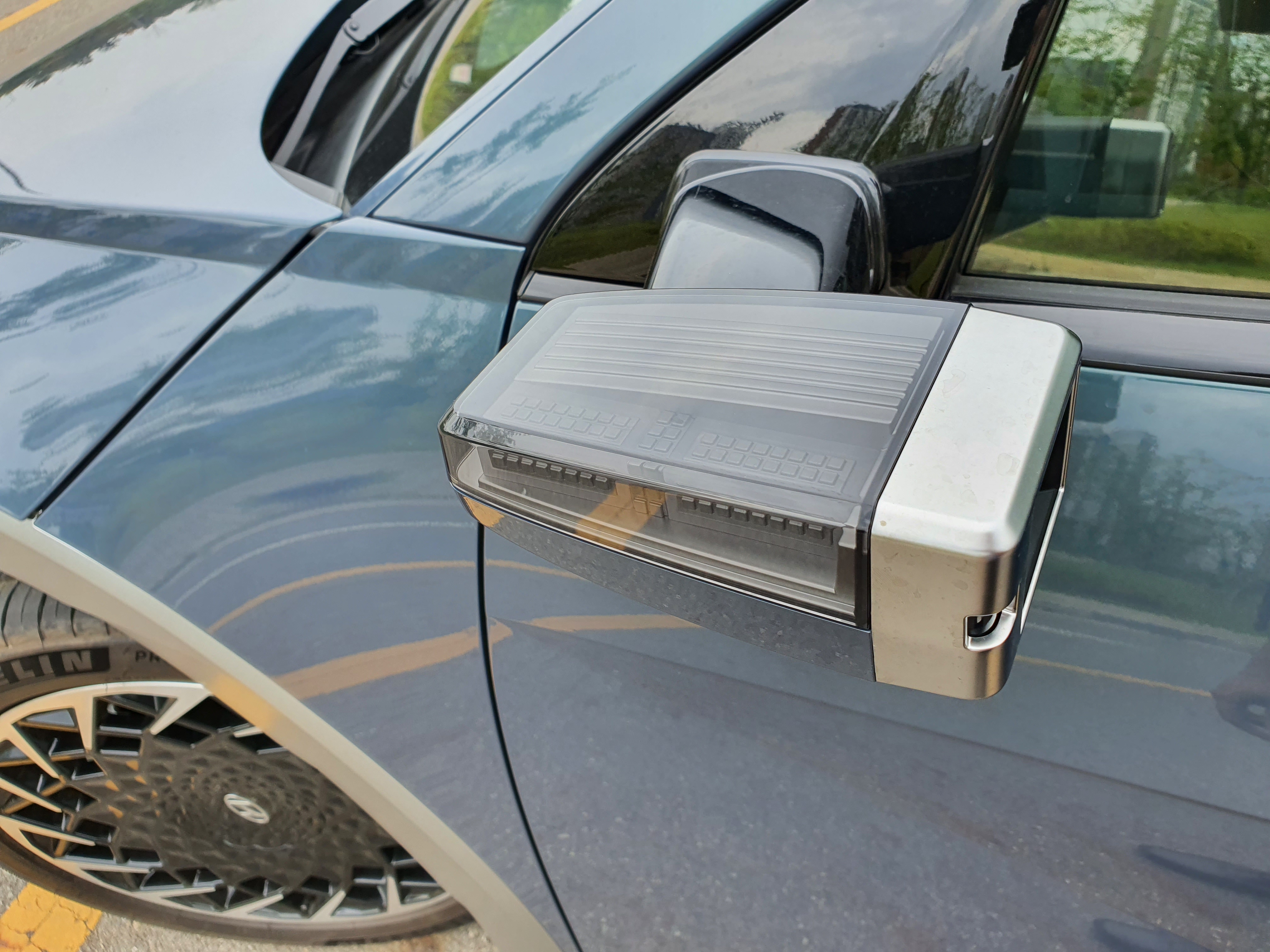 만약에 프레스티지 옵션에서 딱 하나를 선택하라면 디지털 사이드 미러를 추천한다. 130만 원의 가격으로 상당히 높은 가격대를 가지고 있는 옵션이지만 실제 사용해보면 정말 편리함을 느낄 수 있다. 특히나 비오는 날 거울형태의 사이드미러는 잘 안보이지만 디지털 사이드 미러의 카메라 렌즈는 안쪽에 삽입되어 있어서 비가 많이 오더라도 깨끗한 화면을 볼 수 있고 야간에도 시인성이 굉장히 좋다. 또한 특이한 외모의 아이오닉5에 딱 어울리는 형태로 출고 시 장착 안하면 후회하는 옵션 중 하나이다.