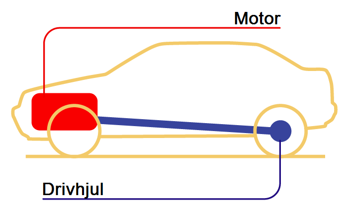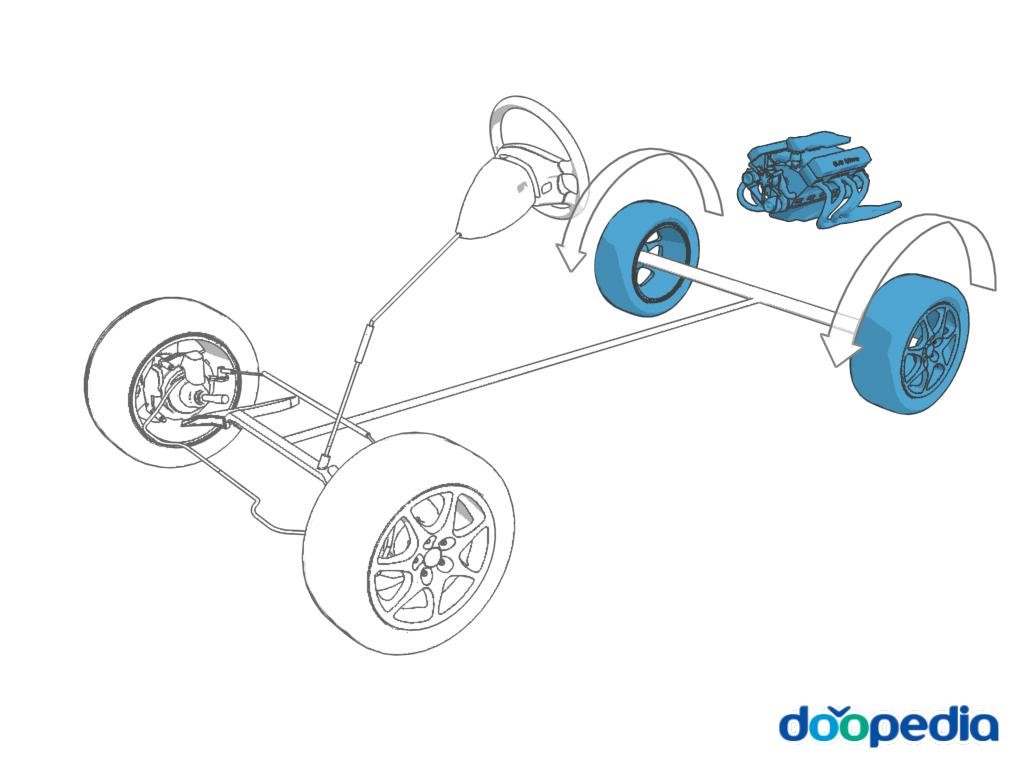 엔진에서 동력을 뒷바퀴로 전달하여 움직이는 방식으로 주로 엔진을 앞에 배치하여 뒷바퀴를 굴리는 방식인 FR(front engine rear drive)이 이용되지만 엔진 설치 위치에 따라 MR, RR등 다양한 방식으로 존재한다.