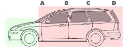세단은 자동차의 기둥 역할인 필러가 A, B, C로 되어 있으며, 필러A 앞쪽으로 엔진룸, A~C사이가 탑승자 공간, C뒤쪽이 트렁크 공간으로 구분된다.