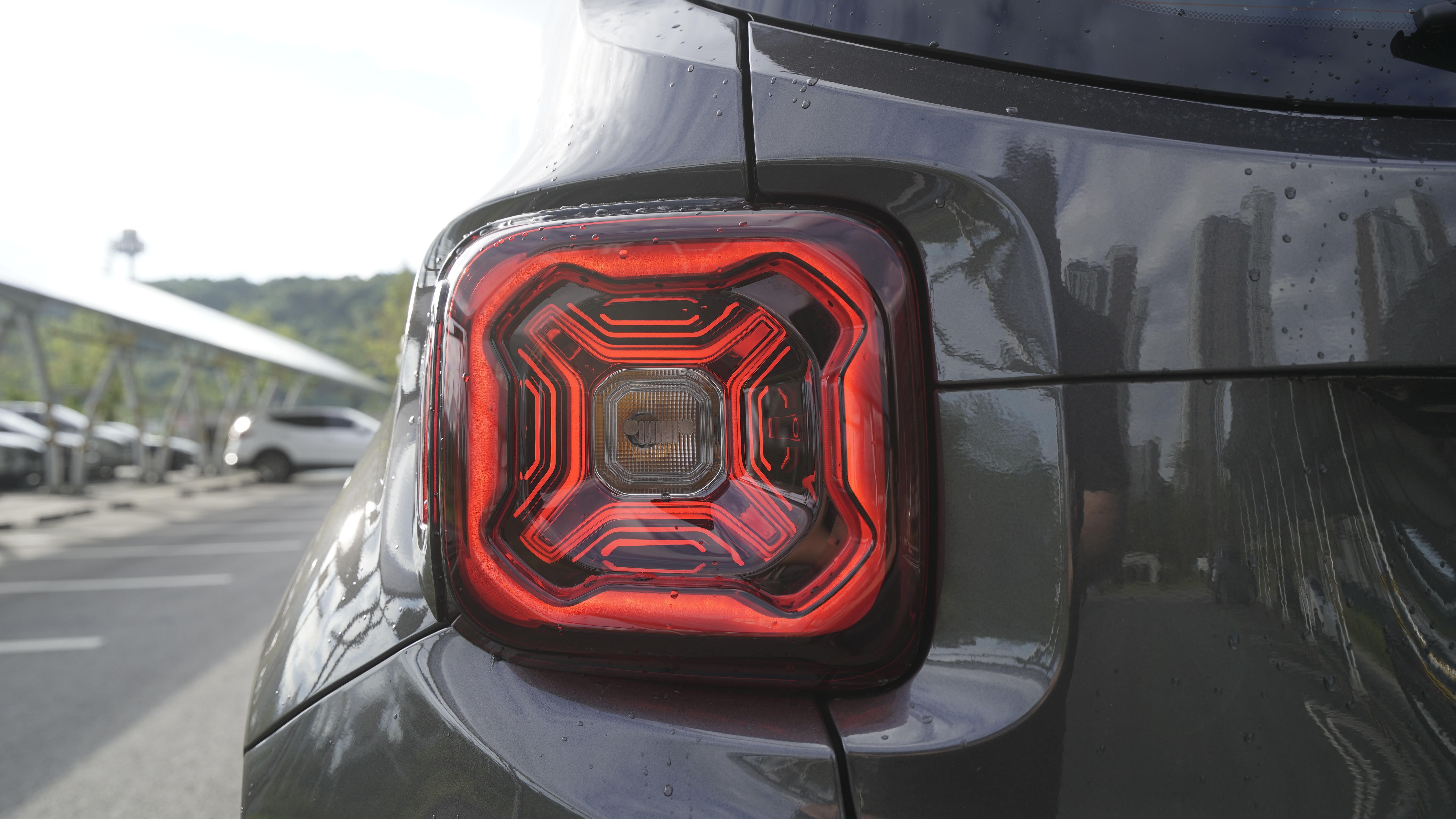 이러한 MB 윌리스는 현대적인 해석으로 지프 레니게이드를 만들면서 아이덴티티를 많이 숨겨두었다. 우선 MB 윌리스는 군용 차량이기에 항시 스페어 타이어와 연료통을 뒤에 싣고 다녔는데 연료통에 표기된 X 디자인을 테일램프로 적용된 모습을 보여준다.