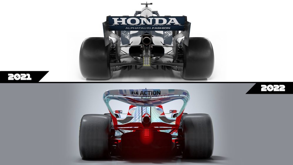 2022년 F1 레이스카는 현재 제작된 레이스카와 비교하면 프론트윙 / 리어윙 등 대부분의 에어로파츠 디자인들이 변화되었다. 전체적으로 보다 단순해졌으며 특히나 프론트와 리어 윙 부분이 현재보다 좀 더 단순화된 모습을 보여주고 있다. 또한 노즈콘과 프론트 윙이 완전히 붙은 디자인을 보여주고 있었는데 사실 F1에서 1980~1990년대에 레이스카에서는 노즈와 윙이 완전히 붙어 있었다. 하지만 1994년쯤 베네통 디자이너였던 존 버나드가 처음으로 노즈와 윙 사이 간격을 두기 시작하면서 더 많은 공기가 차체 바닥으로 들어가게 되어 좀 더 향상된 다운포스를 보여주게 되었다. 이런 프론트 윙에 변화는 상당히 큰 변화를 보여주고 있다.