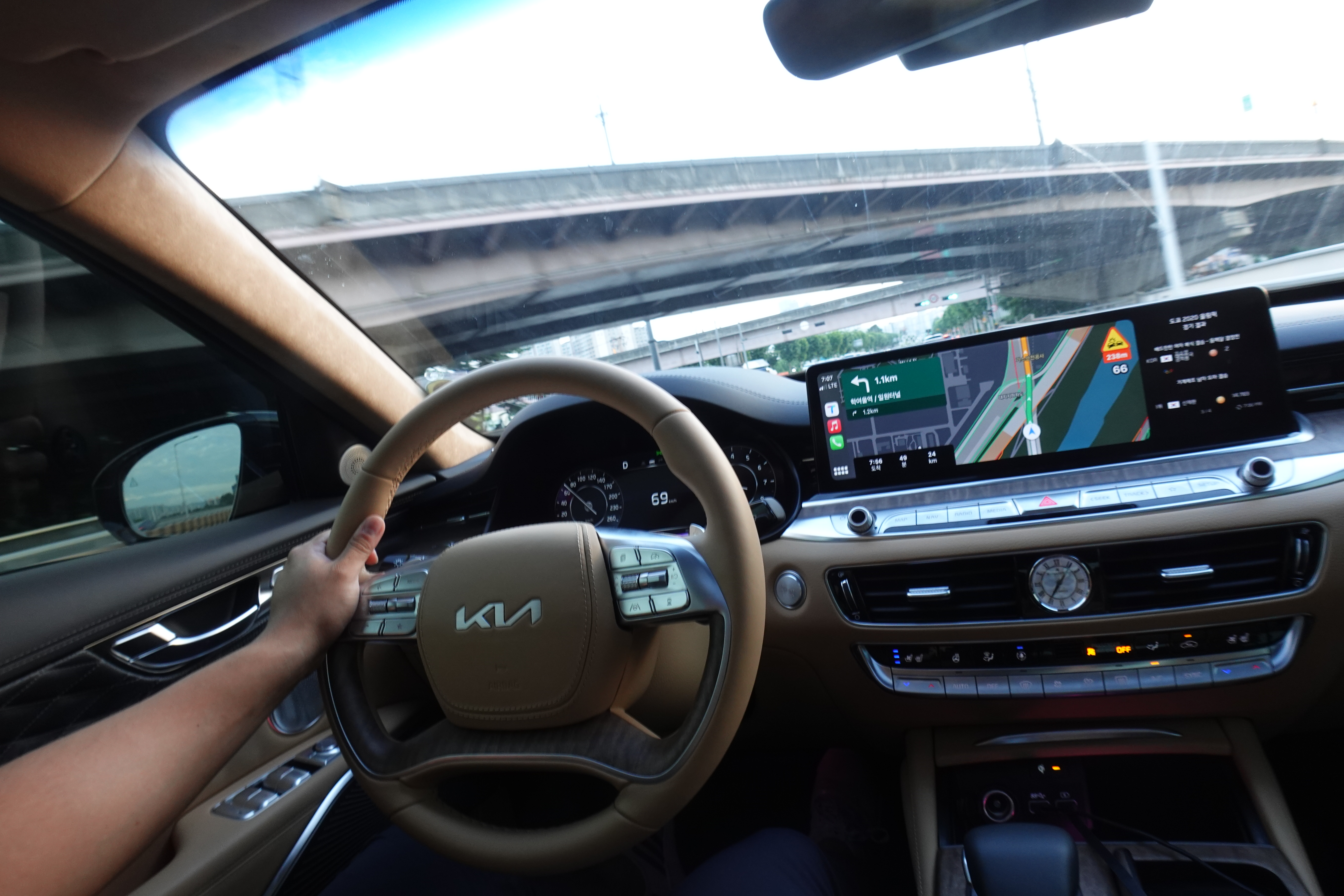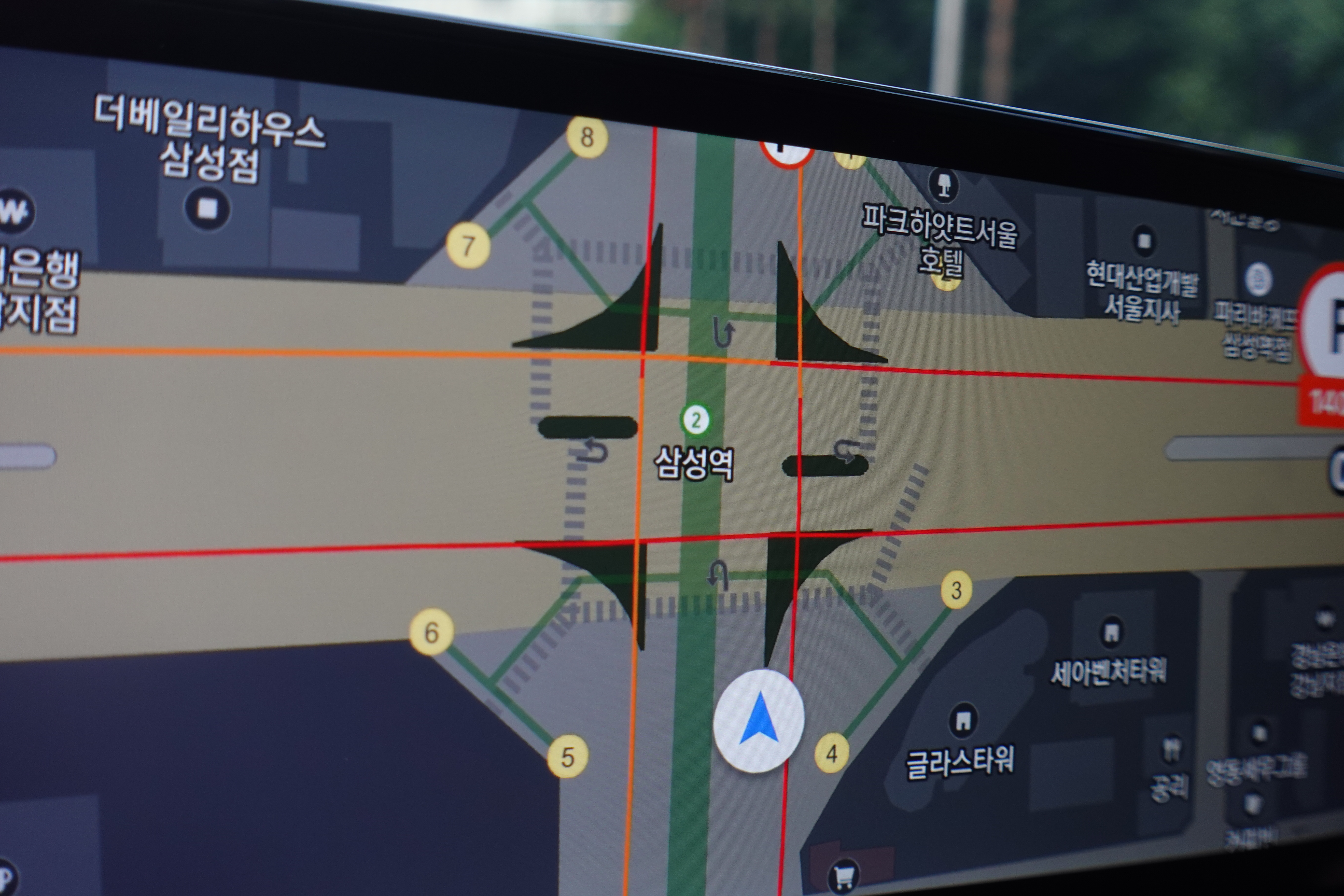 실내에서는 이전 12.3인치 인포테인먼트 시스템에서 14.5인치 인포테인먼트 시스템으로 확실히 커진 화면을 보여주고 있으며 옵션에 따라 증강현실 내비게이션까지 추가가 되어 있어 흡사 제네시스를 타고 있는 듯한 느낌을 보여주고 있다.
