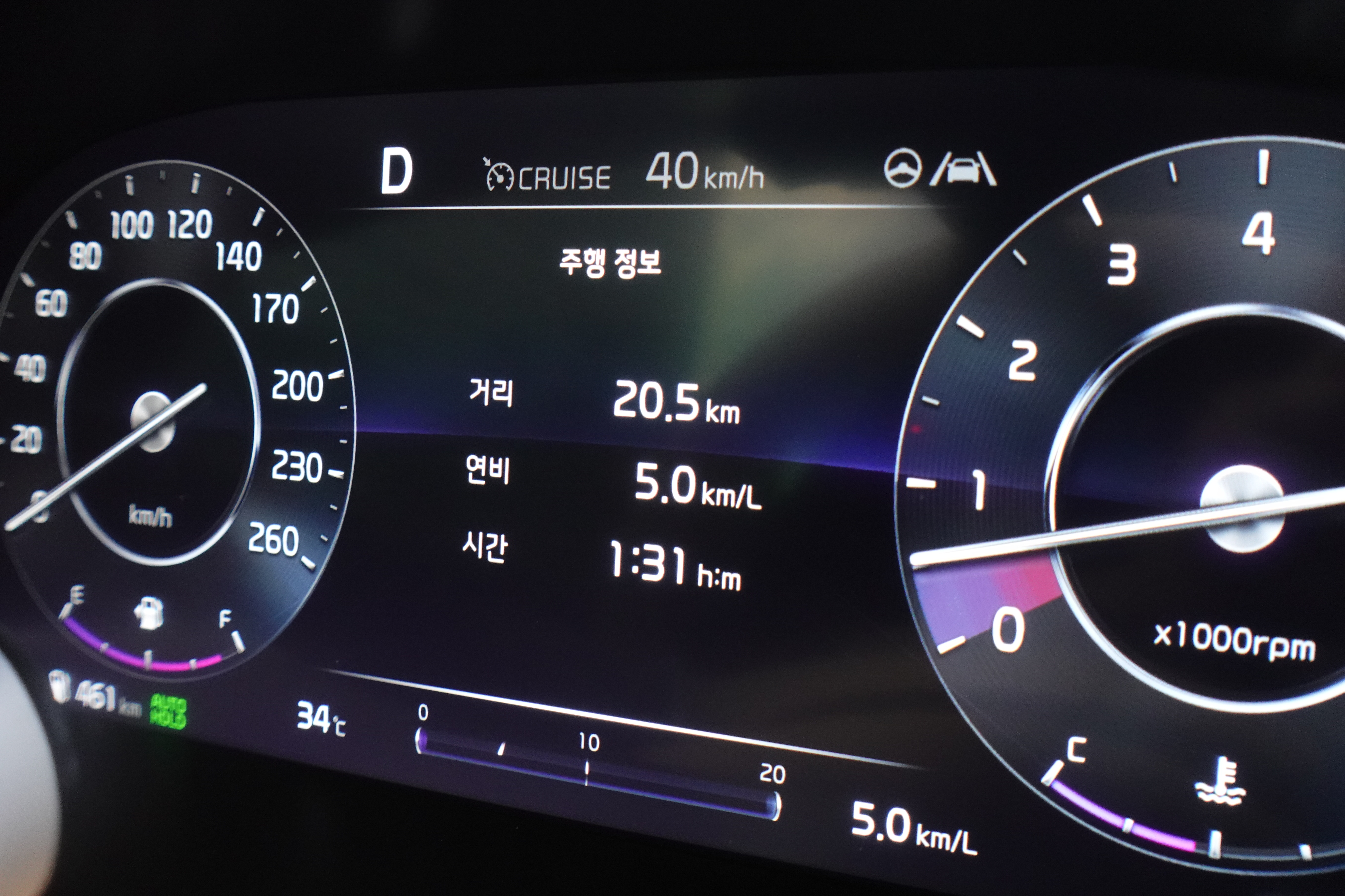 최종 강남퇴근길 연비 테스트 목적지인 잠실역 24.7km 구간에서 더 뉴 K9의 연비는 1시간 51분이 소요되어 5km/L라는 연비를 보여줬다. 커다란 덩치에 2톤이 넘는 무게로 인하여 다소 아쉬운 연비를 보여줬다.