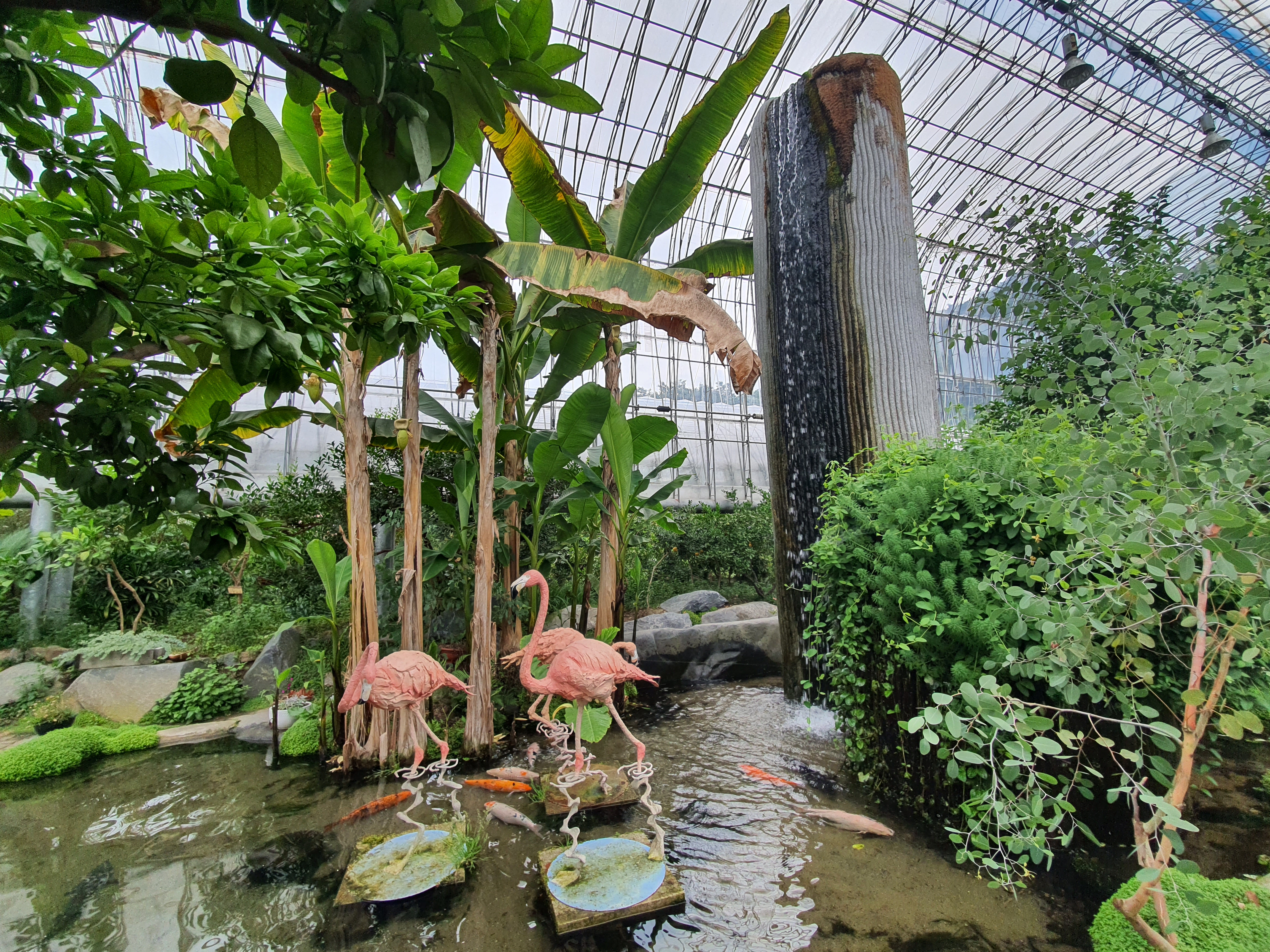 보통 온실로 꾸며놓은 곳들은 습하거나 식물만 쭉 나열해놓은 곳이지만 이 날 비가와서 비를 피할 목적으로 들어온 허브랜드는 정말 만족도가 높았습니다. 여러 식물은 물론 연못에 다양한 물고기들은 아이들이 더욱 좋아하고 이런 물고기들에게 사료를 줄 수도 있었습니다.