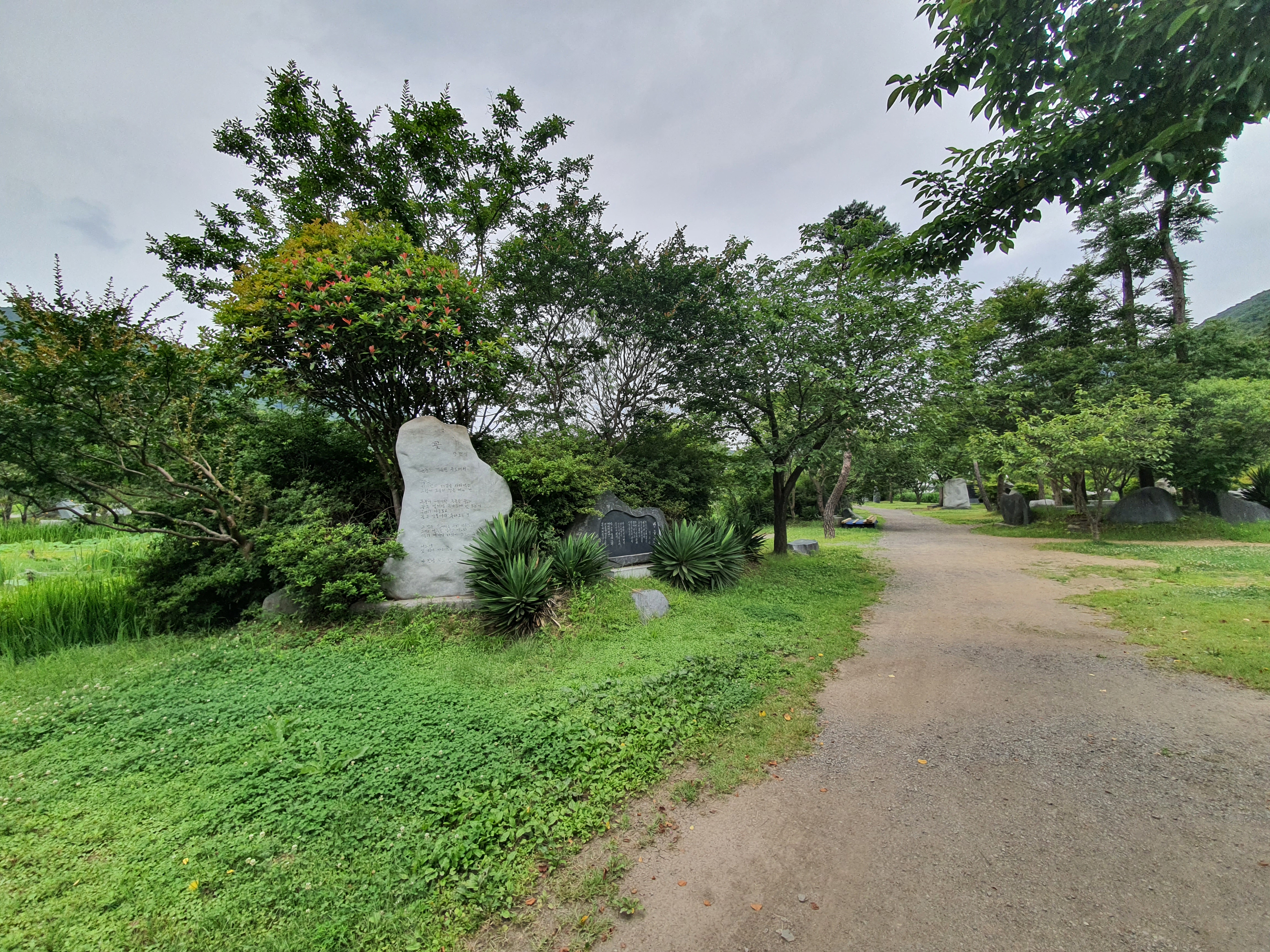 보령 가볼만한 곳으로 추천한 이유는 보령에서 꽃 구경을 하기에 좋은 곳으로 여름에는 연꽃을 가을에는 단풍 구경을 할 수 있으며 봄에는 다양한 꽃들을 만나볼 수가 있습니다. 예술공원이라고 불리우는 이유는 모산 미술관부터 작은 미술관에서 아이들과 함께 미술 작품을 감상할 수 있으며 산책 코스에는 이렇게 설치 미술이나 다양한 돌 조각들을 볼 수가 있습니다.