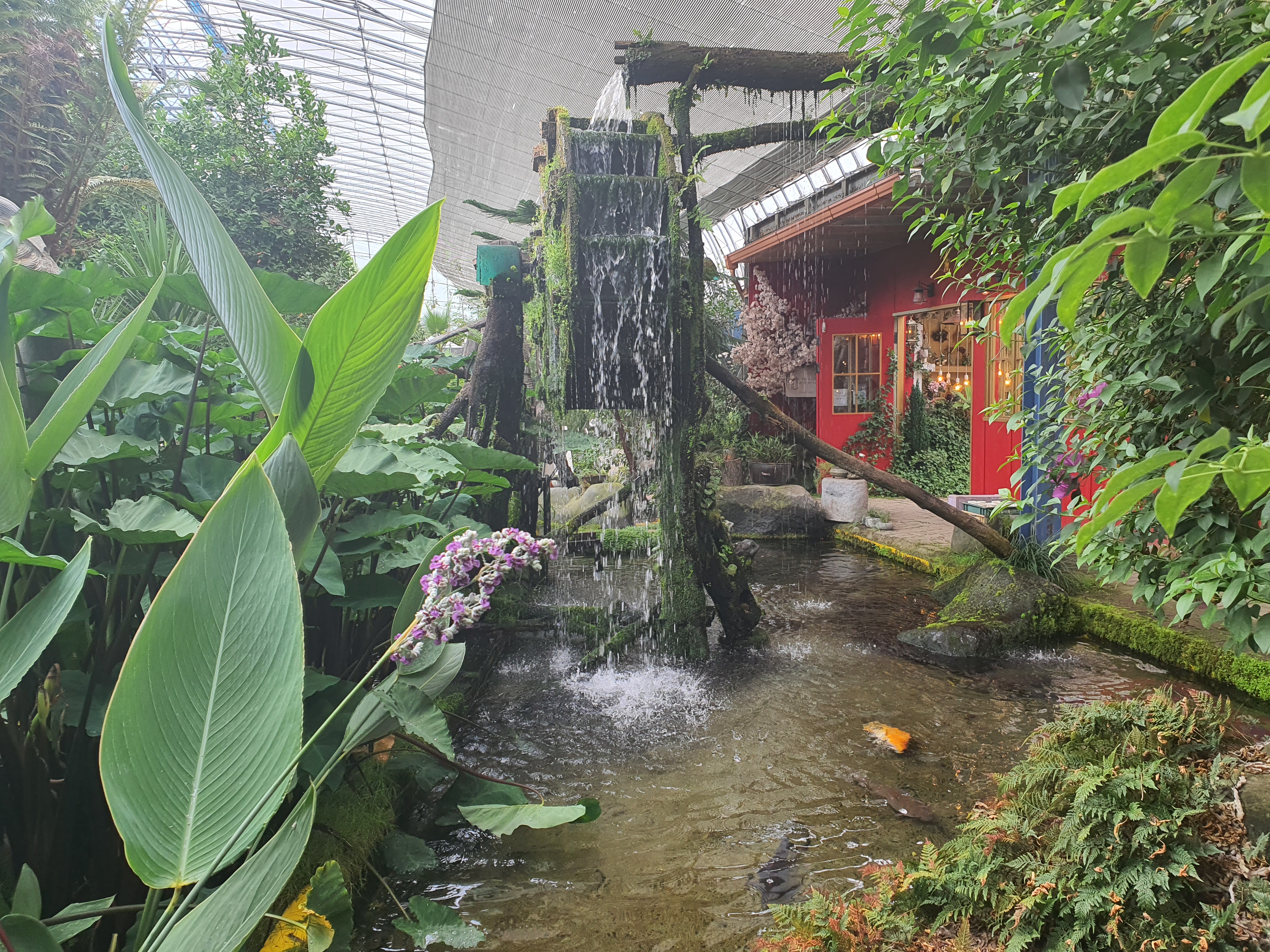 보통 온실로 꾸며놓은 곳들은 습하거나 식물만 쭉 나열해놓은 곳이지만 이 날 비가와서 비를 피할 목적으로 들어온 허브랜드는 정말 만족도가 높았습니다. 여러 식물은 물론 연못에 다양한 물고기들은 아이들이 더욱 좋아하고 이런 물고기들에게 사료를 줄 수도 있었습니다.