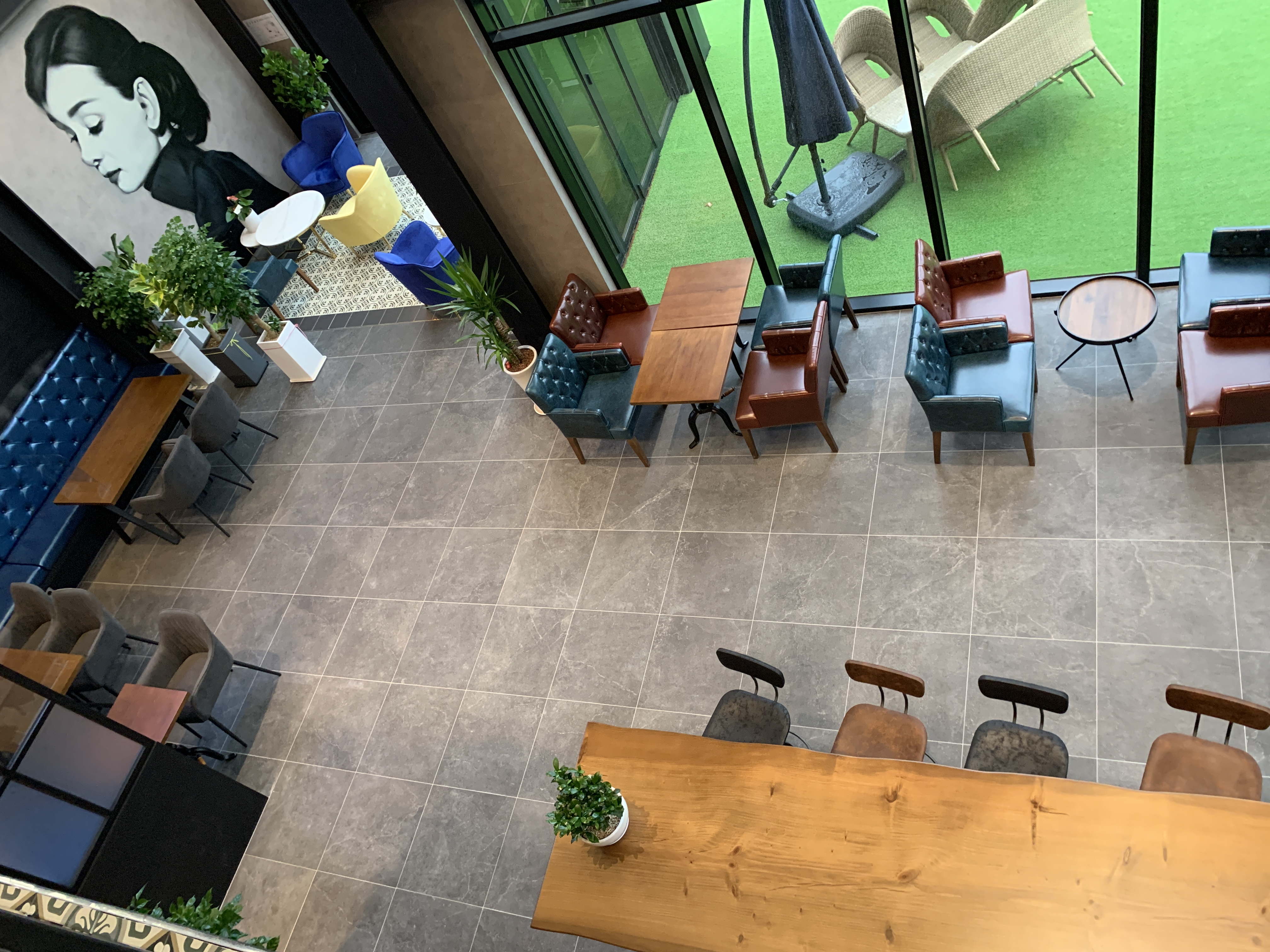 카페 전체에 인테리어는 굉장히 많이 신경 쓴 느낌이다. 총 2층으로 구성된 카페는 혼자서 커피를 마시며 책을 읽기에 좋은 단독 공간 뿐만 아니라 회의도 할 수 있는 다양한 테이블이 존재하기 때문이다. 또한 2층에서 1층을 내려다 보는 뷰는 상당히 만족감이 큰 편이다. 총 좌석 규모가 꽤 넓은 편이며 앉는 위치마다 다른 카페를 온 듯한 느낌의 인테리어는 꽤 만족스럽다.