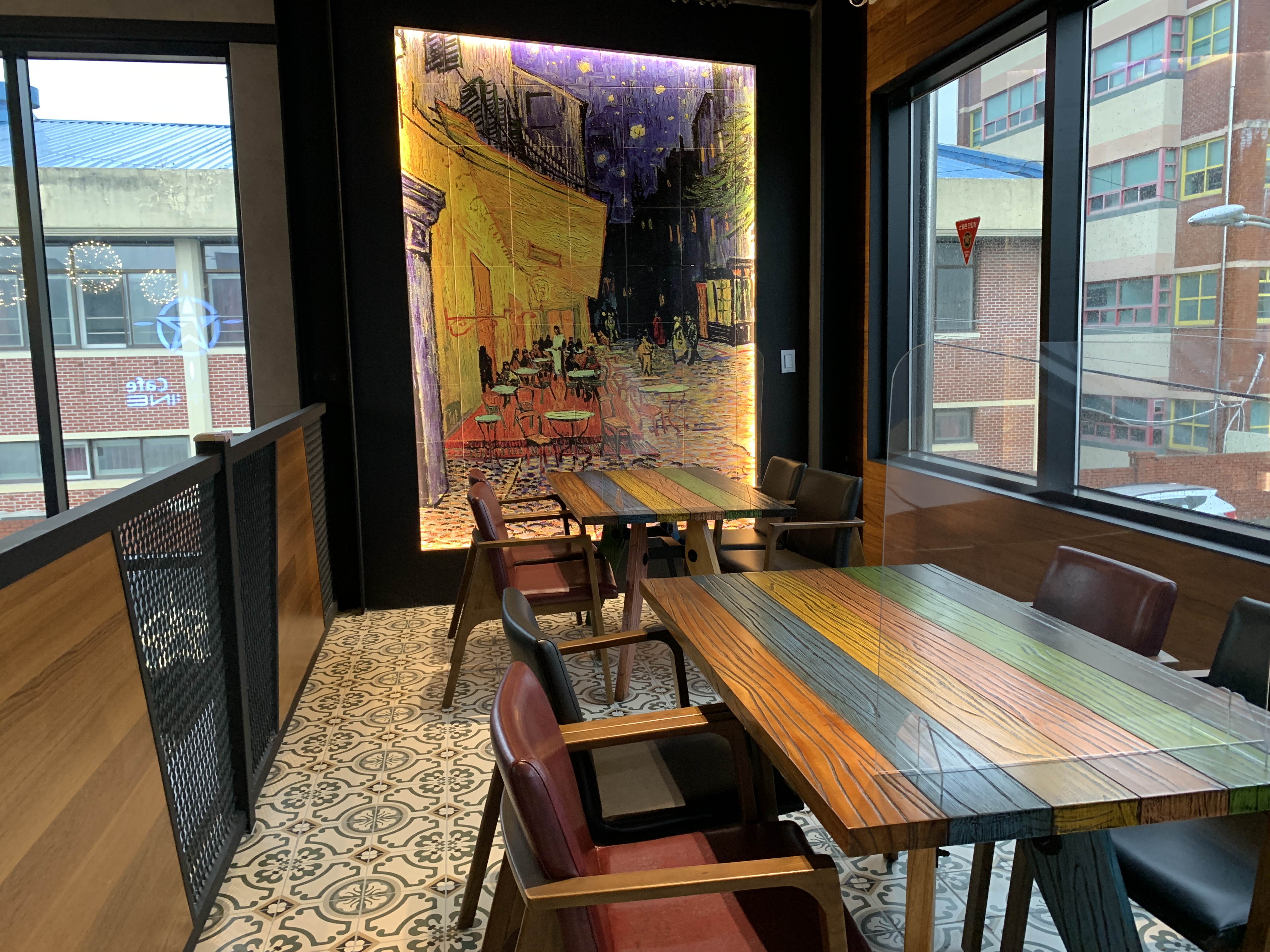 카페 전체에 인테리어는 굉장히 많이 신경 쓴 느낌이다. 총 2층으로 구성된 카페는 혼자서 커피를 마시며 책을 읽기에 좋은 단독 공간 뿐만 아니라 회의도 할 수 있는 다양한 테이블이 존재하기 때문이다. 또한 2층에서 1층을 내려다 보는 뷰는 상당히 만족감이 큰 편이다. 총 좌석 규모가 꽤 넓은 편이며 앉는 위치마다 다른 카페를 온 듯한 느낌의 인테리어는 꽤 만족스럽다.