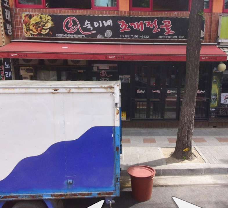 신도림 역 뒤쪽에는 신도림 맛집과 술집들이 즐비한 골목이 있다. 이 곳에서 찾은 숙이네 조개전골은 소주 한잔하기 정말 좋은 곳으로 꽤 매력있는 곳이였다. 이 곳을 찾을 때에는 가게 앞 트럭을 찾는 것이 쉬운데 항상 갈때마다 이 트럭은 이 위치에 있기에 가게 전경을 사진찍기 쉽지 않아 로드뷰 사진을 가져왔다.