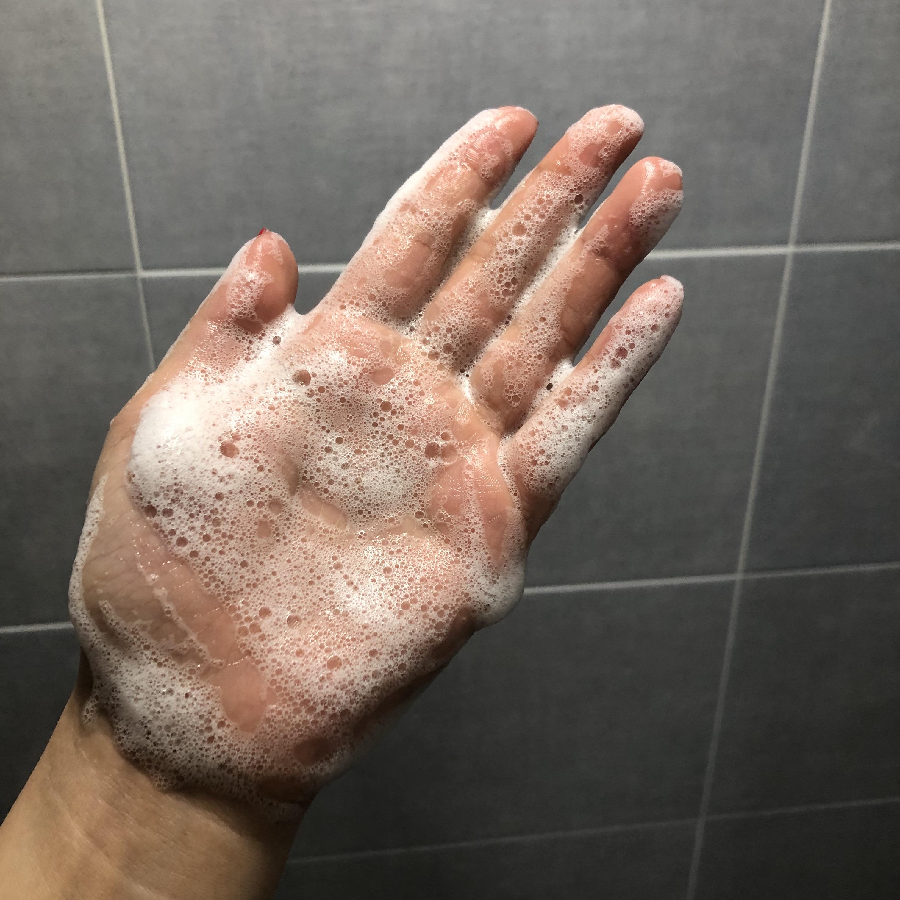 그래서 우선 손에서 거품을 내봤다. 도구 없이 여러 번 비벼봤을 뿐인데도 천연화장품 치고 생각보다 거품이 잘났다.
