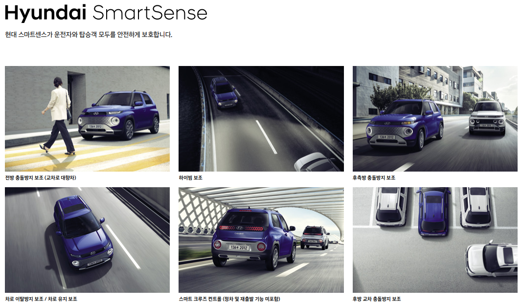 캐스퍼 사양은 편안하고 안정적인 주행 성능은 물론 현대 카페이, 서버기반 음성 인식 차량 제어 등 운전자 편의에 중심을 두어 뛰어난 상품성을 갖췄다.