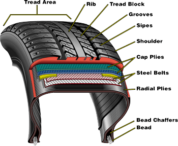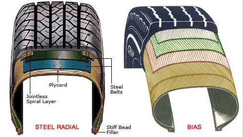 바이어스 타이어가 타이어 전체를 감싸는 구조라면 래디얼 타이어는 몸통 부분만 한,두겹 정도섬유 층으로 감싸고 그 위에 트레드 부분만 한 두겹의 스틸이 90도 각도로 배열되어 있는 구조다. 그래서 바이어스 타이어처럼 전체적으로 탄탄한 느낌과 달리 트레드 부분의 강성이 더 높아 무게를 고르게 분산시키고, 안정적이고 더 큰 견인력을 제공해 타이어 마모가 줄어든다. 또 타이어의 측면이 독립적인 기능을 할 수 있어 주행 중 트레드 면에 손상이 발생해도 영향을 작게 받는다. 견인력이 높고 승차감이 향상된다는 점에서 SUV차량에서 선호한다.