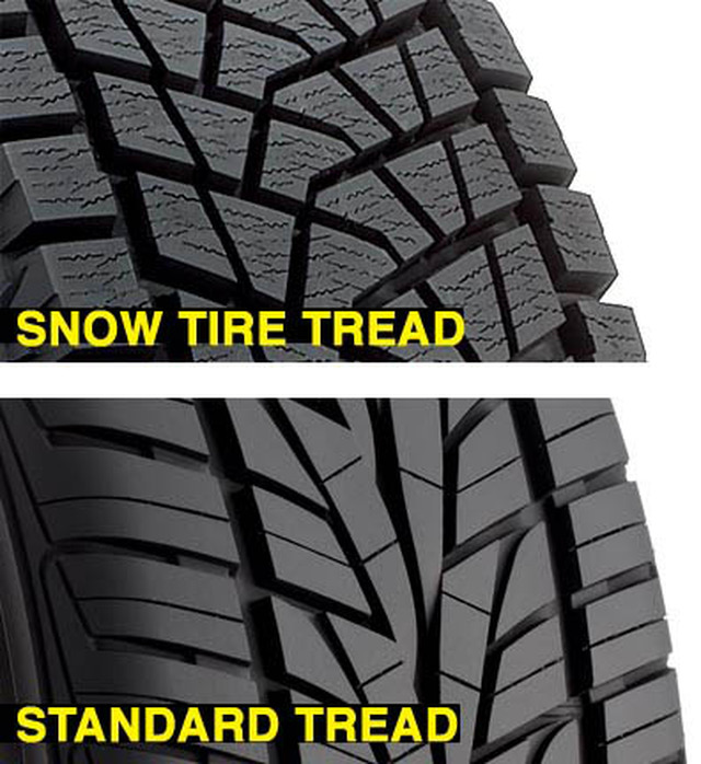 겨울용 타이어는 날씨에 의해 젖거나 얼어있는 도로를 운전할 때 특수 고무를 사용해 접지 면적을 넓혀 미끄러움을 방지하기 하고, 일반적인 바퀴보다 홈이 깊고, 많이 파여 있다. 스노우 타이어라고도 부르며 추운날씨에도 타이어가 쉽게 굳지 않는다.