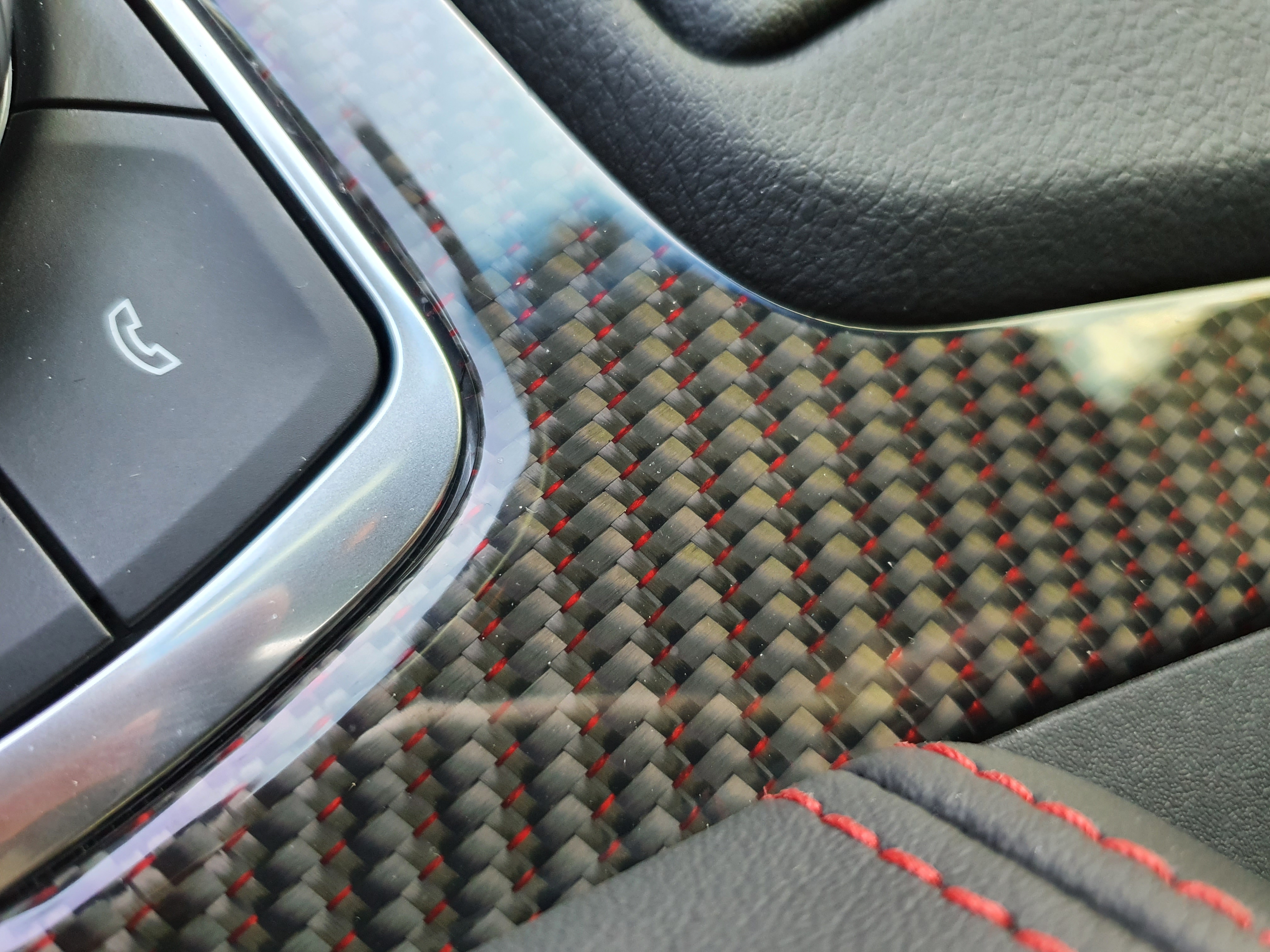캐딜락은 스포츠 패키지를 정말 잘 만드는 브랜드이다. 다른 자동차 브랜드들도 스웨이드 / 카본 패턴 등 다양한 재질을 사용하고 있지만 이 가격대에서는 캐딜락 CT5 모델이 거의 독보적이다. 6,000만원이 안되는 금액대에 CT5 스포츠 모델에는 마그네슘 패들 쉬프트, 알칸타라 스웨이드 재질의 스티어링 휠을 감쌌으며 보통은 하이그로시가 적용될 법한 곳에 모두 카본 소재를 사용하여 차량의 가격은 1억 원이 넘는 느낌을 보여주기도 한다.