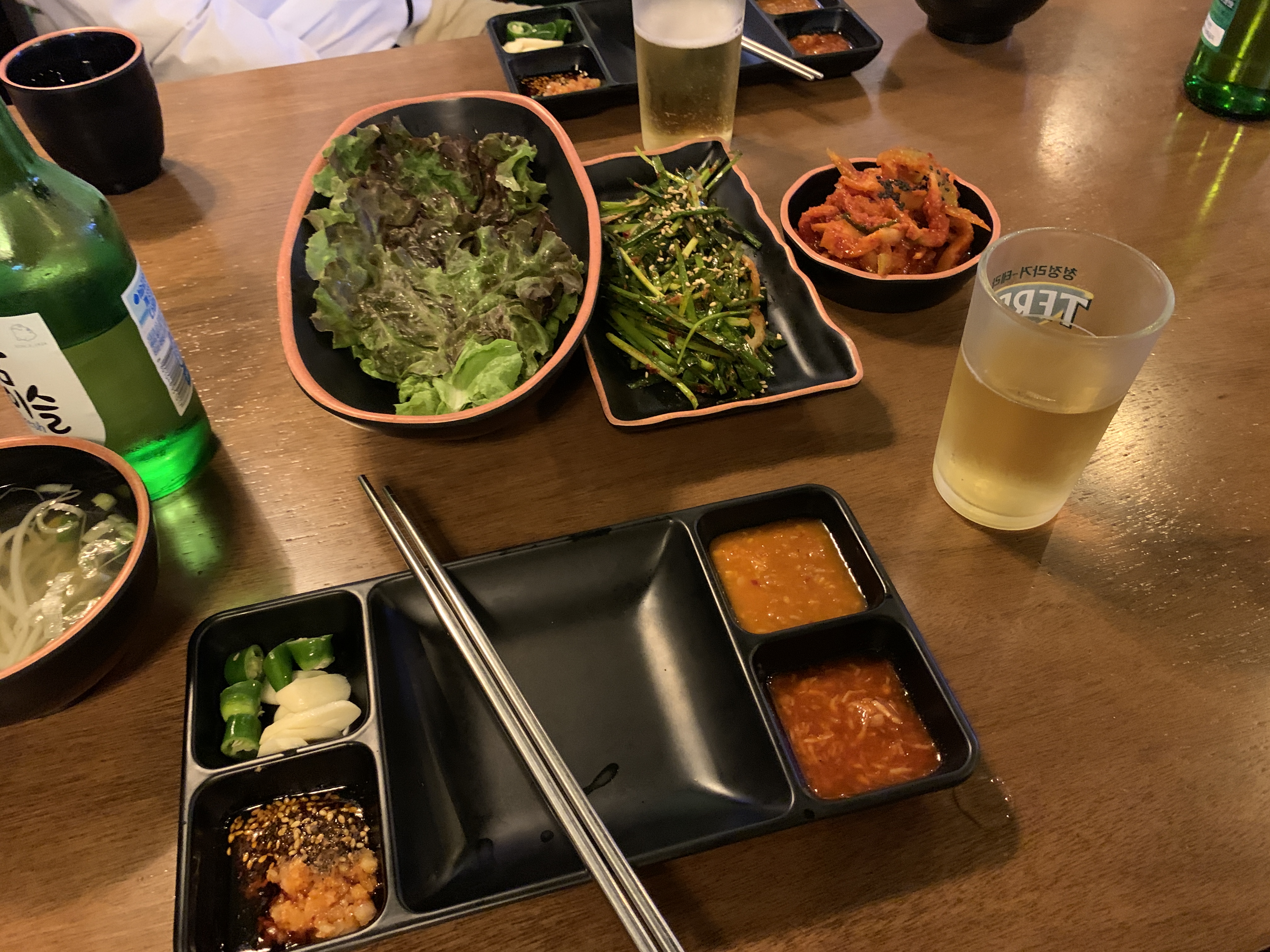 기본 반찬으로는 특별할 것이 딱히 없다. 시원한 콩나물국에 부추와 상추 그리고 무김치와 소스 3가지와 마늘과 청양고추로 전체적으로 특별한 부분은 없었지만 기본적인 이 곳에서의 메뉴는 독특한 부분이 많았기에 기대가 되었다.