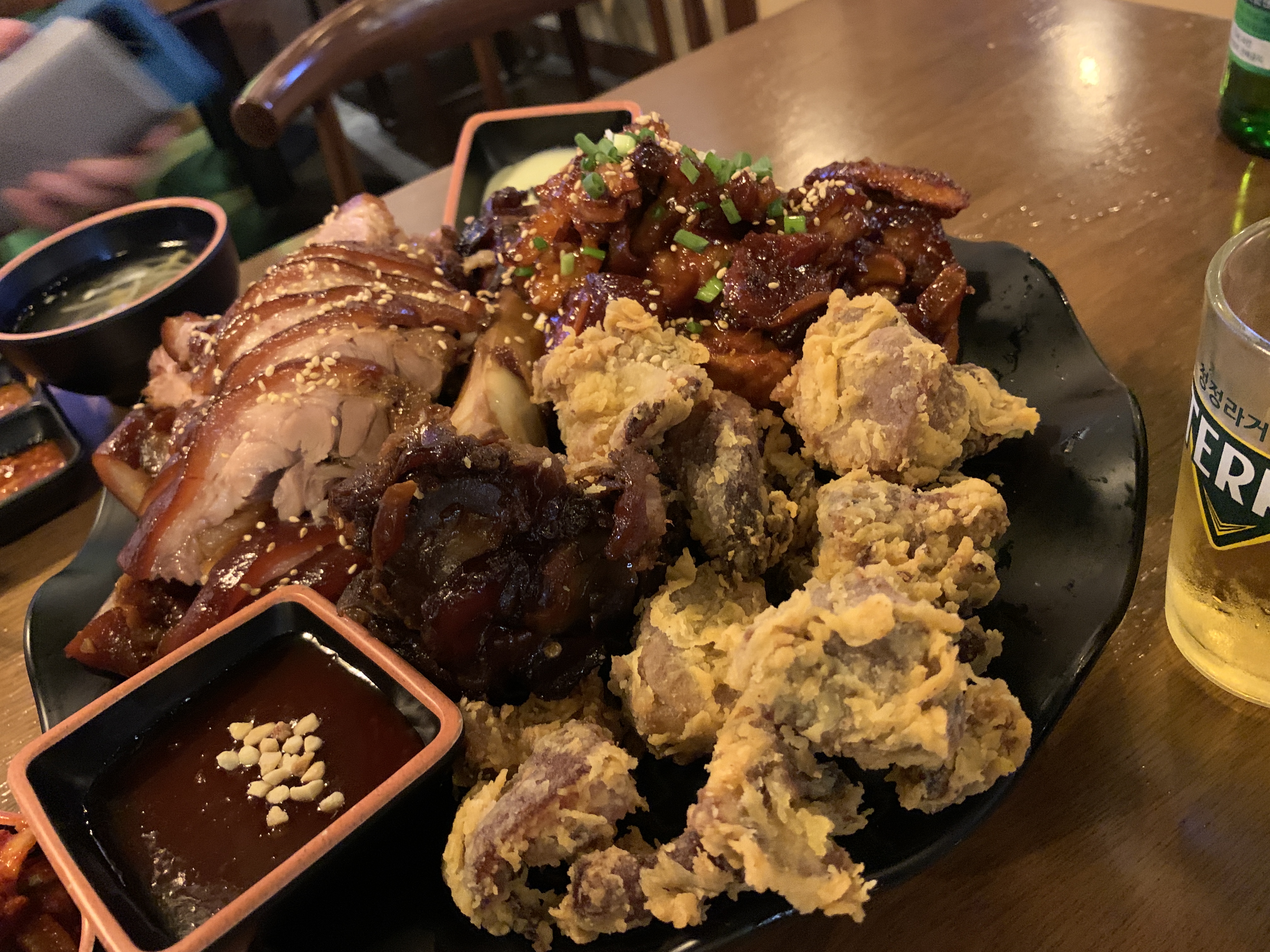 개인적으로 강추하는 맛은 이 메뉴였다. 후라이드 족발튀김... 사실 후라이드나 튀김이나 같은 말이지만 어쨌든 족발 자체가 살짝 느끼함이 있기에 굉장히 느끼할 것이라 생각했지만 바삭한 튀김옷이랑 족발은 꽤 잘 어울리는 편이다. 여기에 양념치킨 소스와 비슷한 소스를 찍어먹으면 정말 맛이 좋고 맥주 안주로 상당히 만족스러웠다.