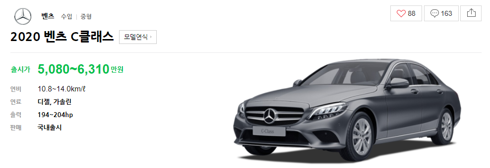 디젤 엔진은 모델명 C220d 4MATIC으로 최대출력 194hp, 연비 14.0km/ ℓ, 출시가 6,310만원이다.
