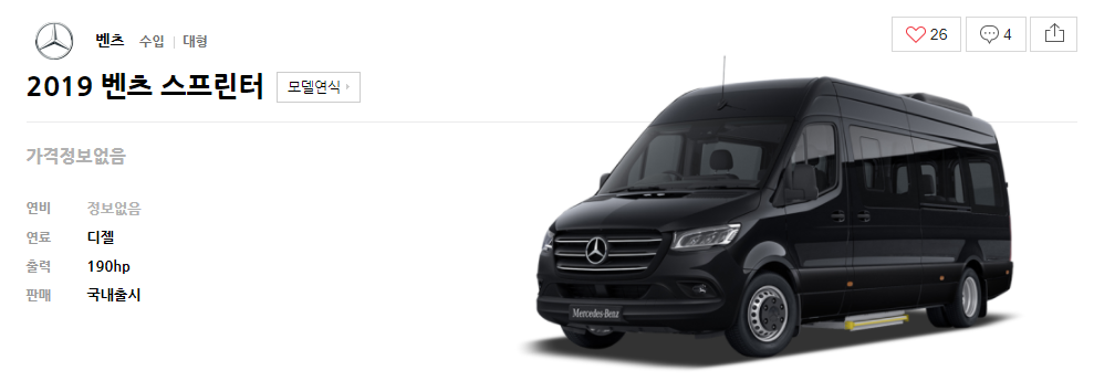 스프린터는 디젤 엔진을 사용하며 319 CDI / 519 CDI Long / 519 CDI Extra Long 모델로 나눠져 있고, V6엔진에 싱글 터보 방식을 사용하고 있다. 최대 출력 190hp, 배기량 2,987cc이며 자동 7단 변속기가 적용되어있는 벤츠 자동차다.