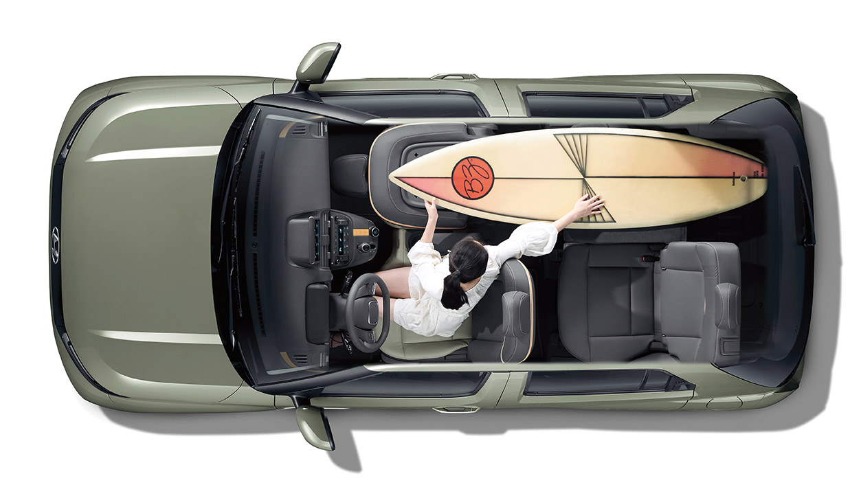 친구와 함께 드라이브를 할 수도 있고 1열과 2열을 풀 폴딩이 되기 때문에 이렇게 서핑 보드를 싣고 서핑을 할 수도 있습니다. 물론 1열 시트가 접히기 때문에 작은 차량이지만 차박과 캠핑을 하기에도 좋기 때문에 사회초년생 N잡러들에게 정말 좋은 선택이 아닐까 생각됩니다.