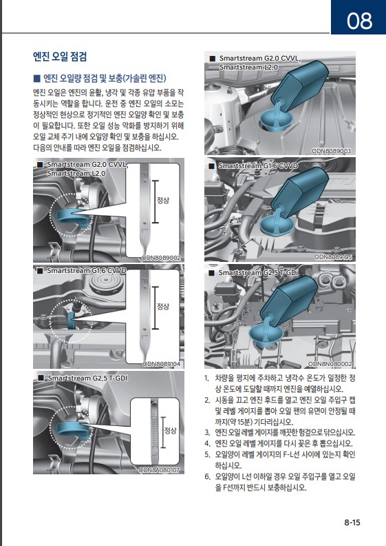 여기까지 현대자동차에서 제공하는 차량 취급 설명서를 찾는 방법과 각 항목별 정리된 내용에 대해 간략히 알아봤다. 신차 길들이기 중이거나 안전하게 자동차 점검 및 관리를 하고 이용하기 위해 한번쯤 꼭 읽어보면 도움이 많이 될 것이다. 특히 내차에 맞는 엔진오일 규격에 대한 정보가 필요하다면 꼭 취급설명서를 먼저 확인해 보는 것이 좋다.