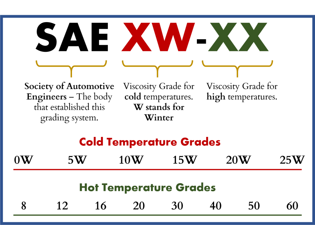 엔진오일을 구분할때는 크게 점도와 등급으로 나눠진다. 우선 점도는 OW-OO 이런식으로 표기 되는데 앞의 숫자는 윈터지수의 약자인W가 붙는다. 추운 기온에서 자동차 시동을 걸 때 엔진 오일이 얼마나 빨리 엔진 전체에 도달하는지에 대한 엔진오일 등급으로 숫자 0부터 5로 나눠지는데 숫자가 낮을수록 점도가 낮아 시동시 더 빨리 흐르는 유동성 높은 오일의 의미한다. 따라서 추운 환경일 경우 낮은 숫자의 윈터지수 오일을 사용해야 한다. 또 뒤에 붙는 두자리 숫자는 고온점도를 의미하는데, 차가 워밍업 된 후 정상 엔진 온도에 있을 때 엔진 주위를 이동하는 오일의 점도와 관련이 된 수치다. 저온 점도와 마찬가지로 숫자가 낮을수록 점도가 낮은 것을 의미하기 때문에 엔진 주위를 더 빨리 이동할 수 있어 출력이나 연비와 관련이 있다.