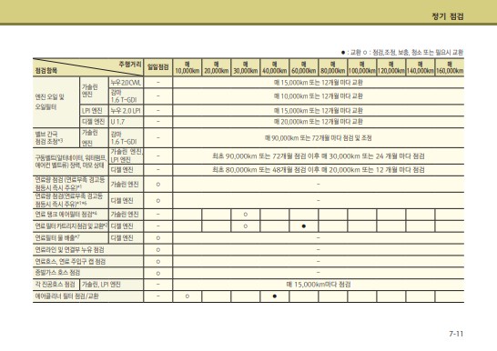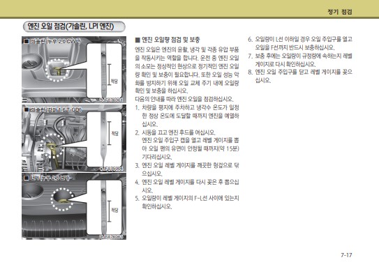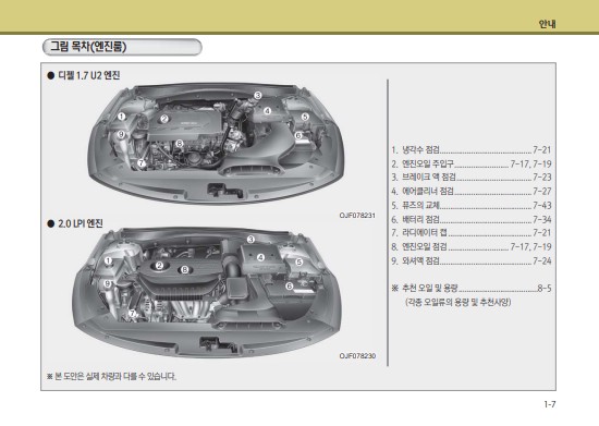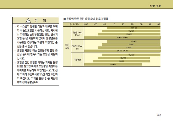 특히 여기서 가장 유용하게 쓰일 내용은 엔진오일 추천 및 용량이다.