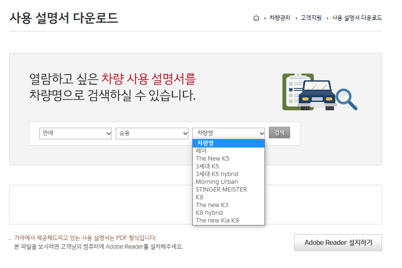 [차량 취급 설명서 찾기]