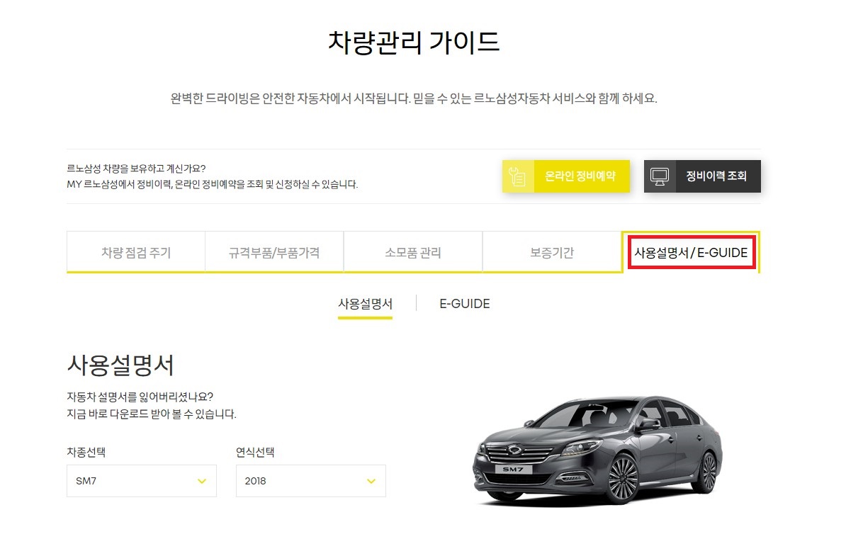 [차량 취급 설명서 찾기]